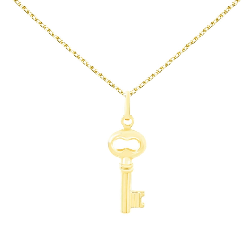 Libellé Collier - Pendentif Clef Or Jaune - Chaine Dorée Offerte - Femme ou Enfant
