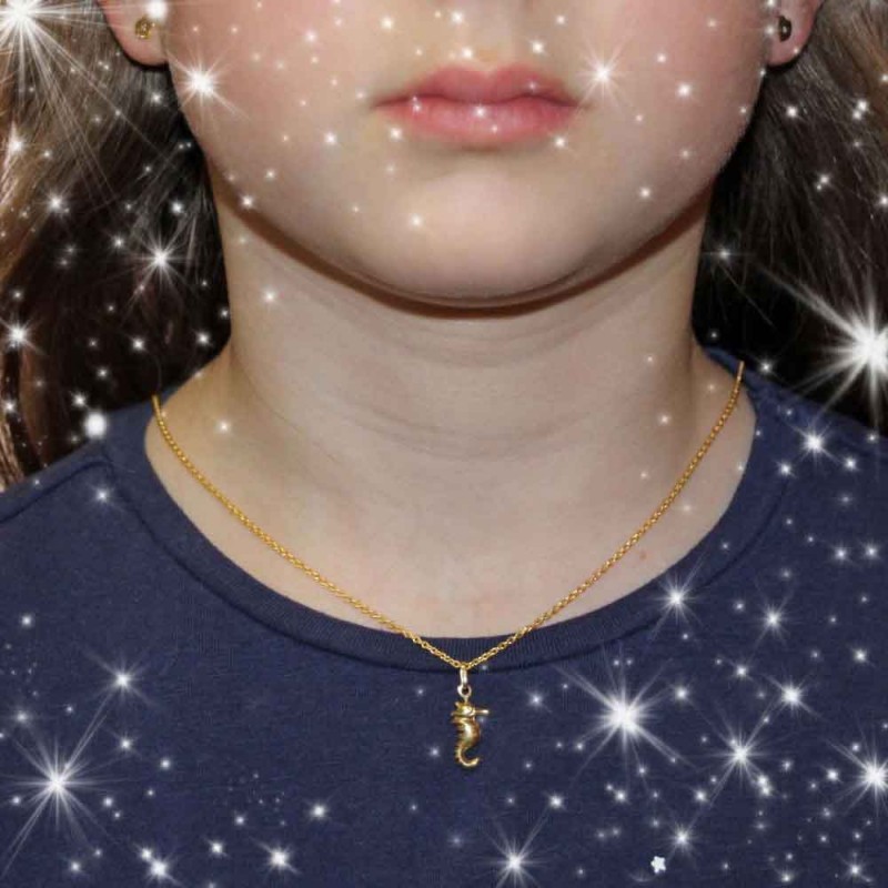 Collier - Pendentif Hippocampe Or Jaune - Chaine Dorée Offerte - Enfant