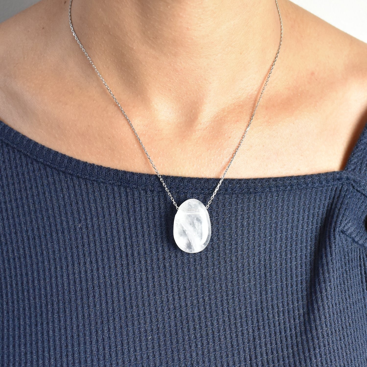 Collier pierre naturelle cristal de roche Argent 925 Rhodié