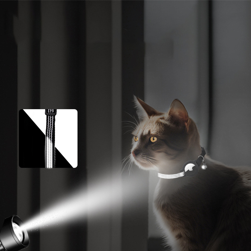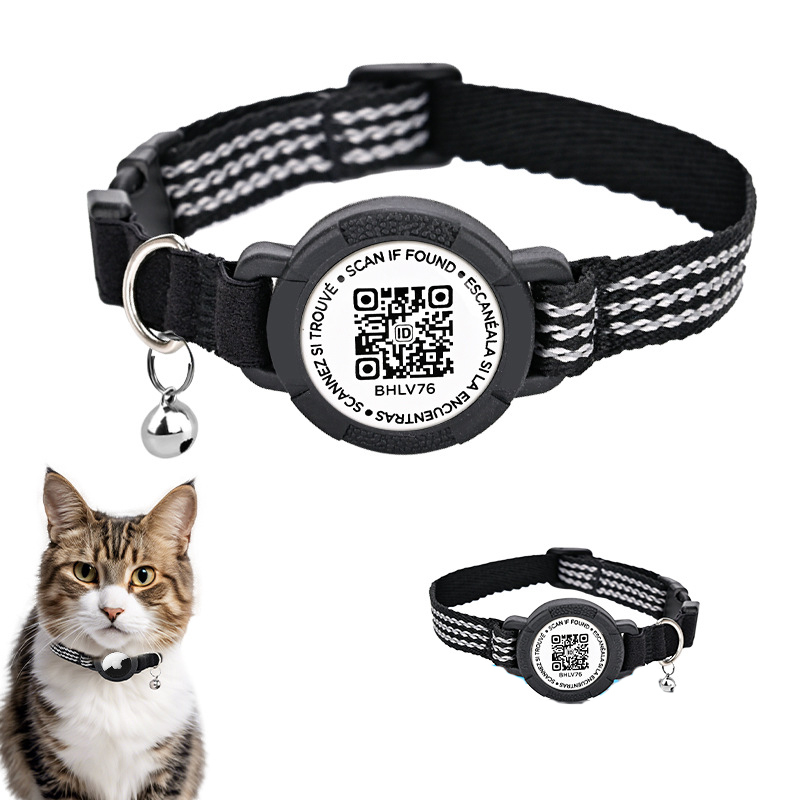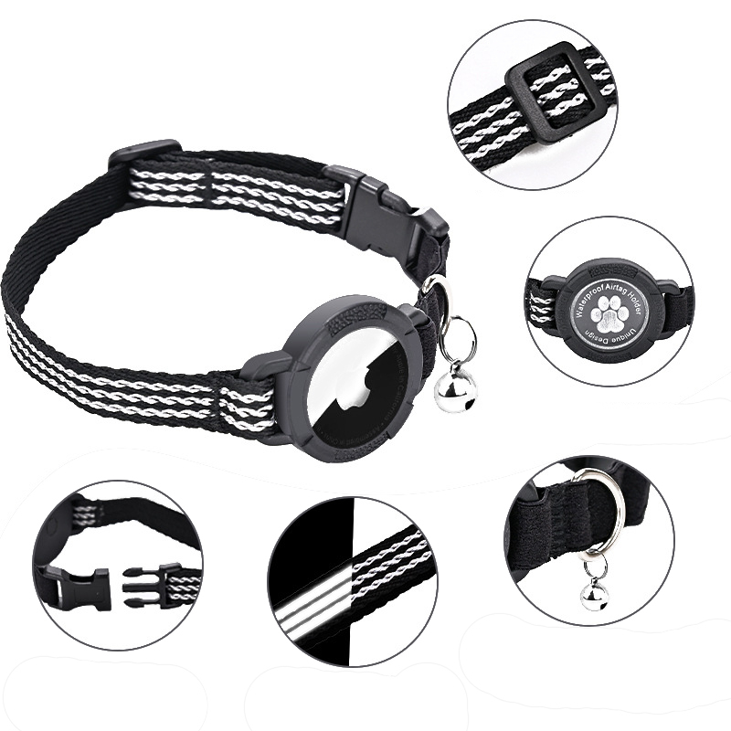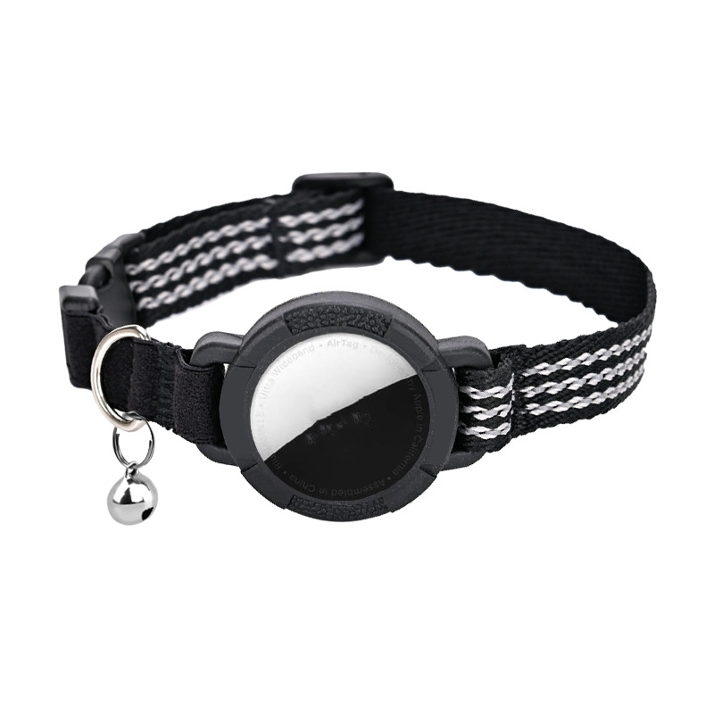 Collier pour animaux compatible avec AirTag, collier de suivi réfléchissant en nylon noir pour chat, anti
