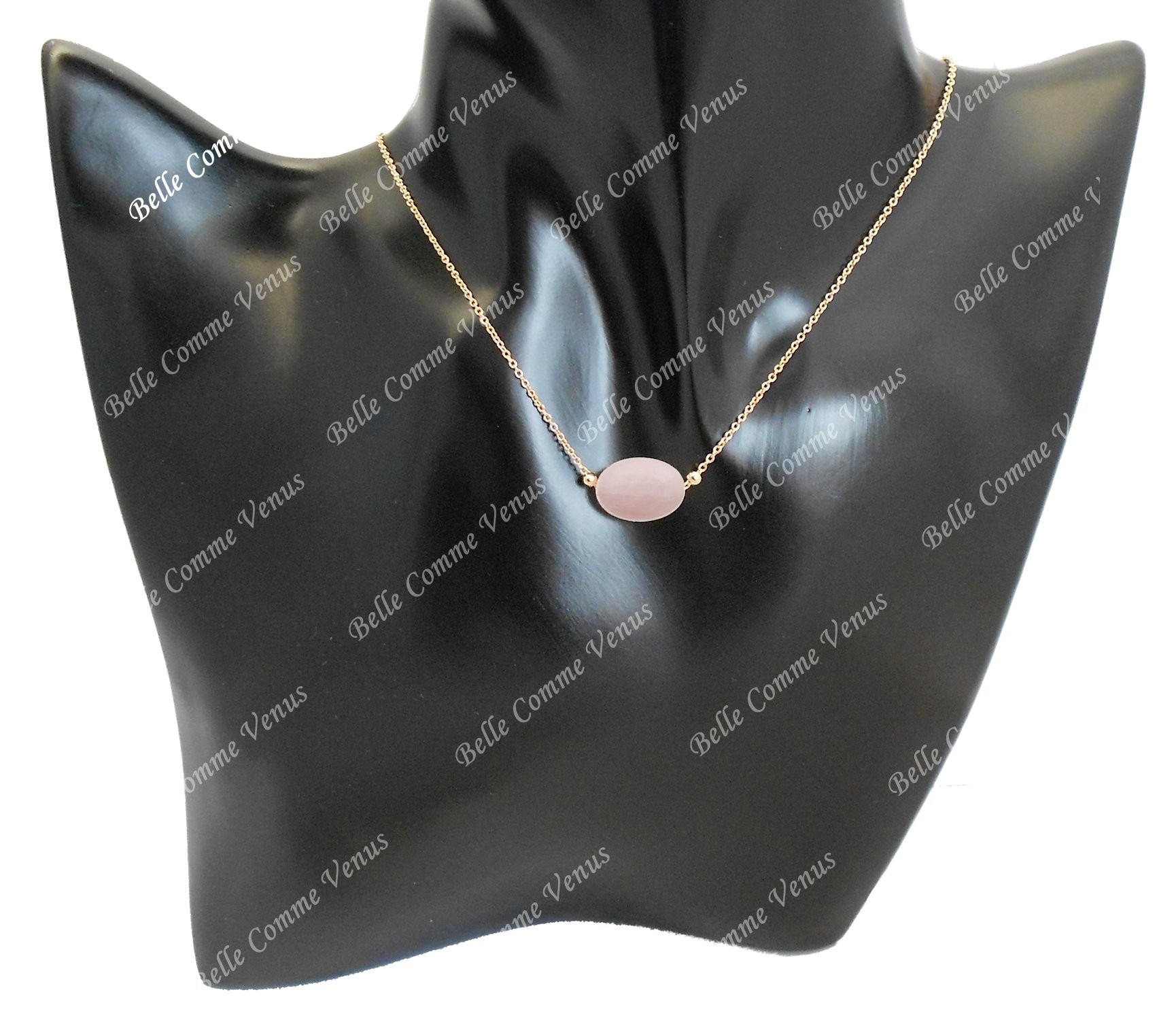Libellé Collier quartz pierre naturelle ovale Plaqué OR 750 3 microns