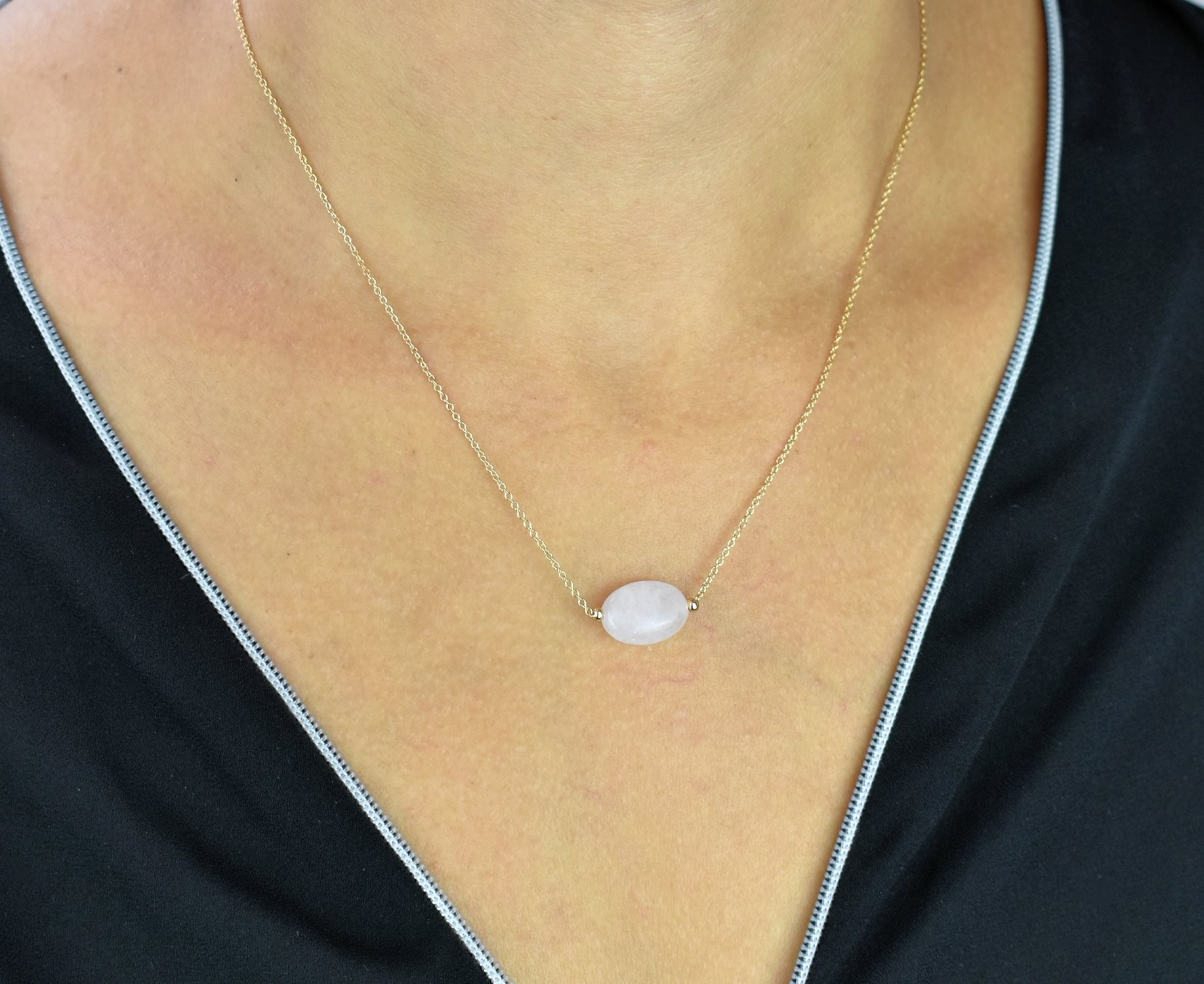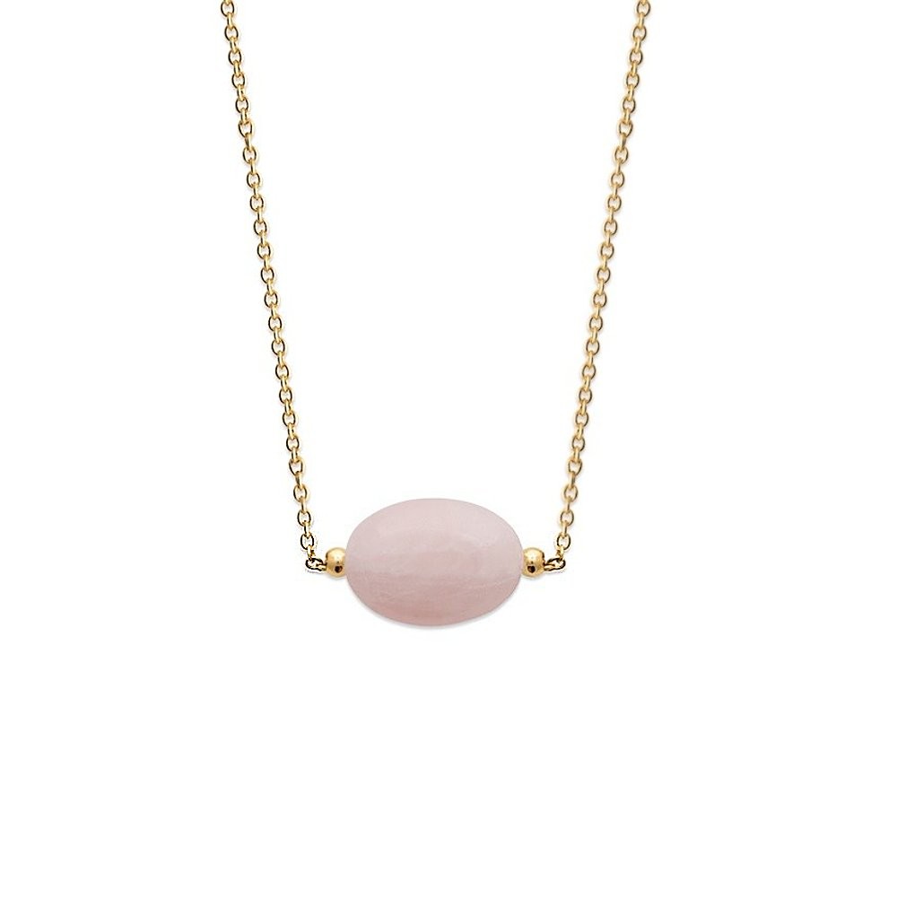Collier quartz pierre naturelle ovale Plaqué OR 750 3 microns