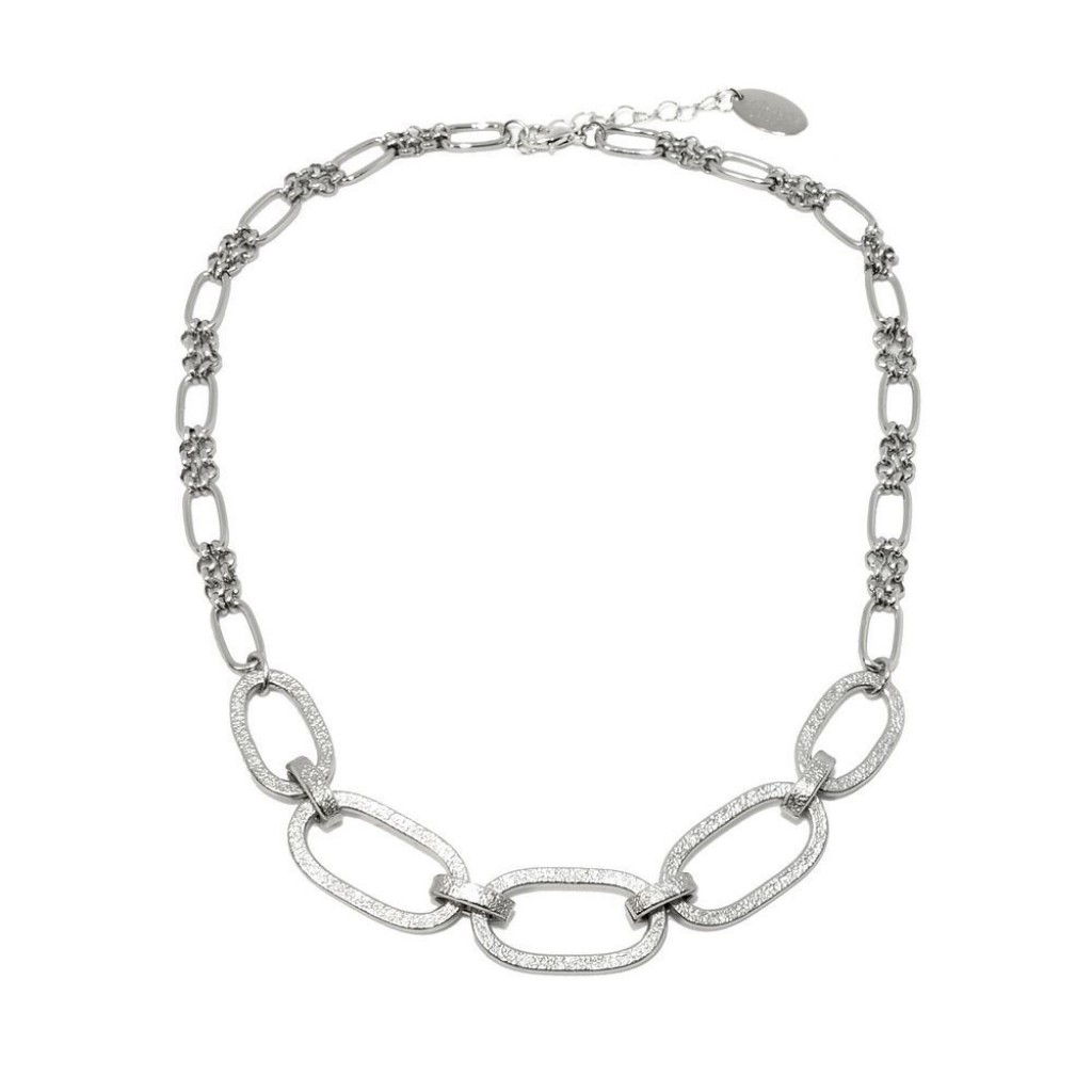 | Libellé | Collier ras du cou en plaqué argent fait main avec chaîne en mailles de différentes tailles - Bijou de créateur |