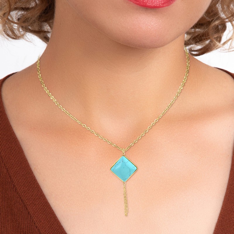 Collier SC Bohème orné d'une pierre turquoise en acier inoxydable