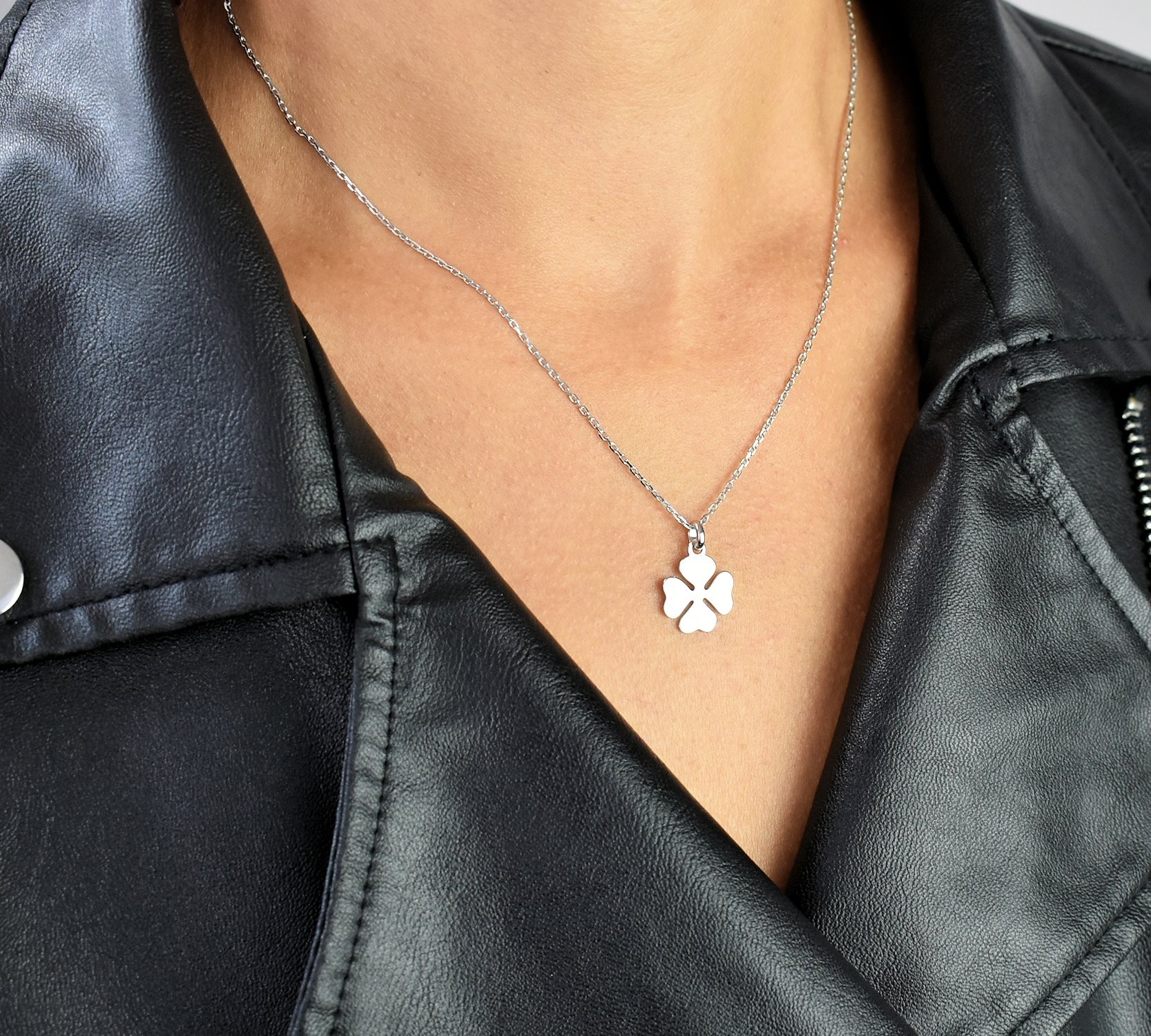 Collier trèfle à 4 feuilles de coeurs porte-bonheur Argent 925 Rhodié