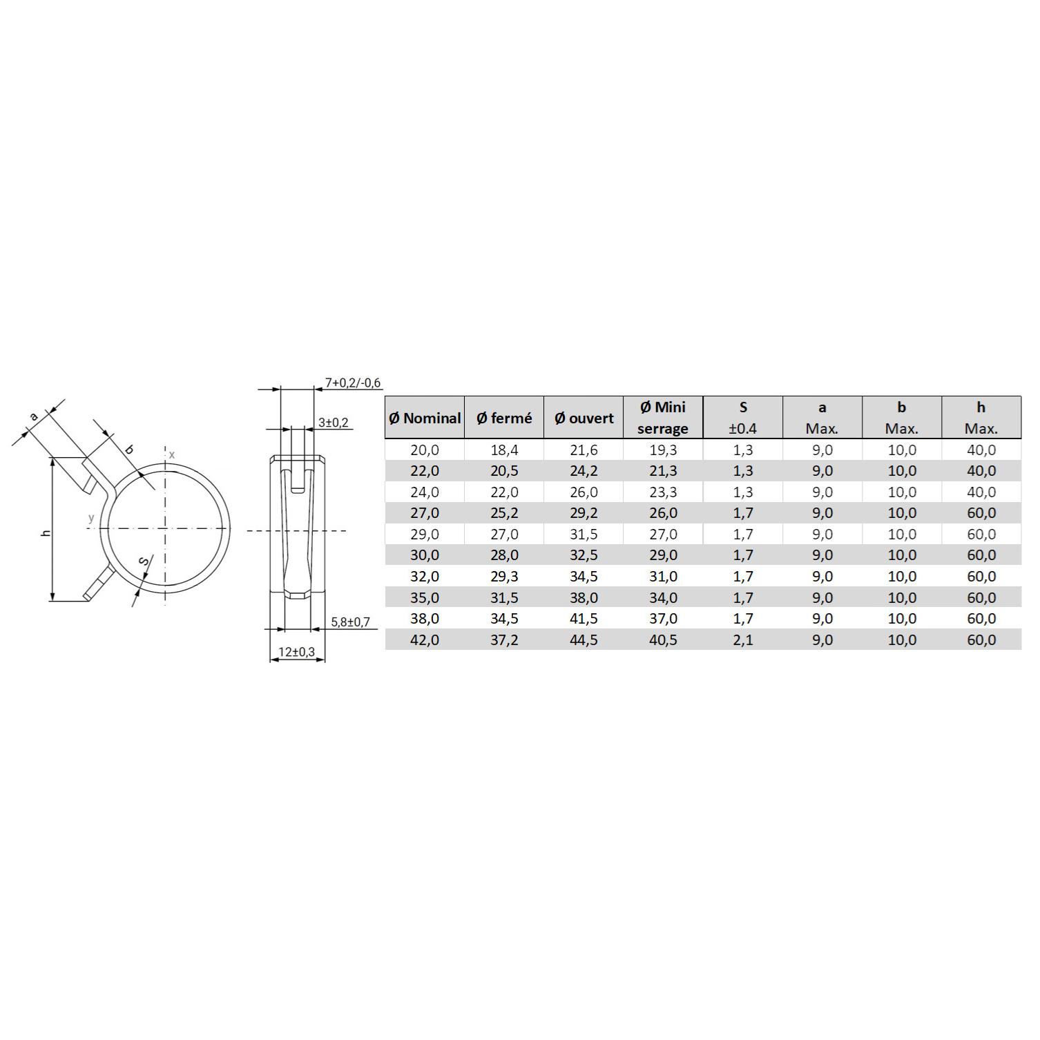 | Libellé | COLLIERS A RESSORT AUTOSERRANTS POUR DURITES - dtail : diam. Nominal 32 |