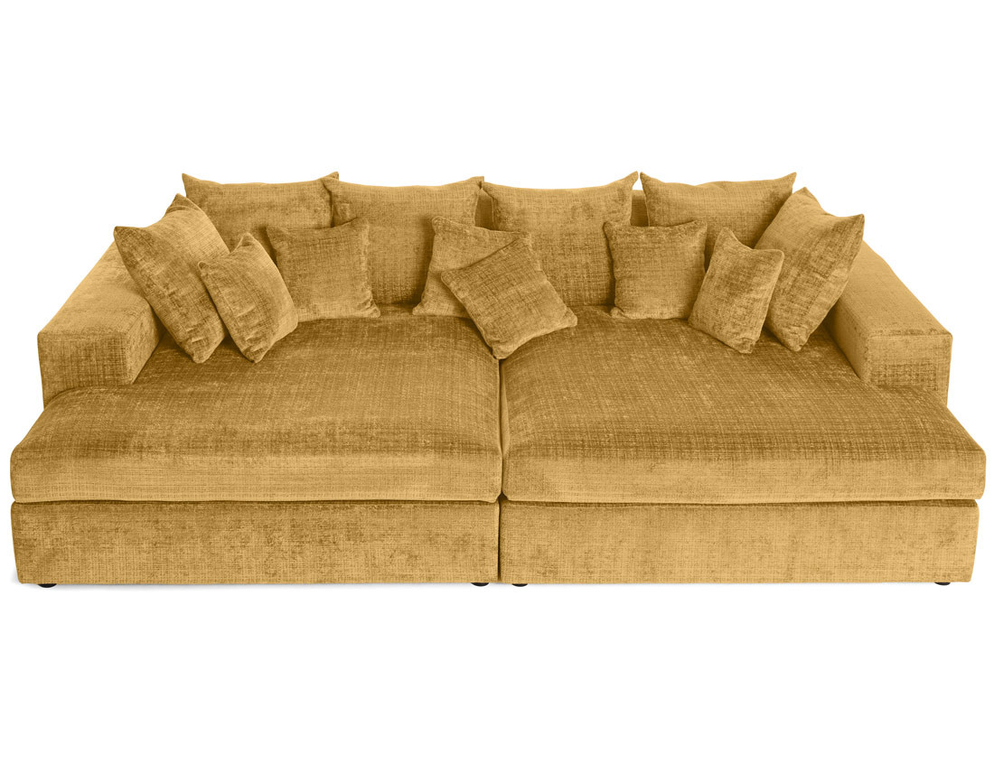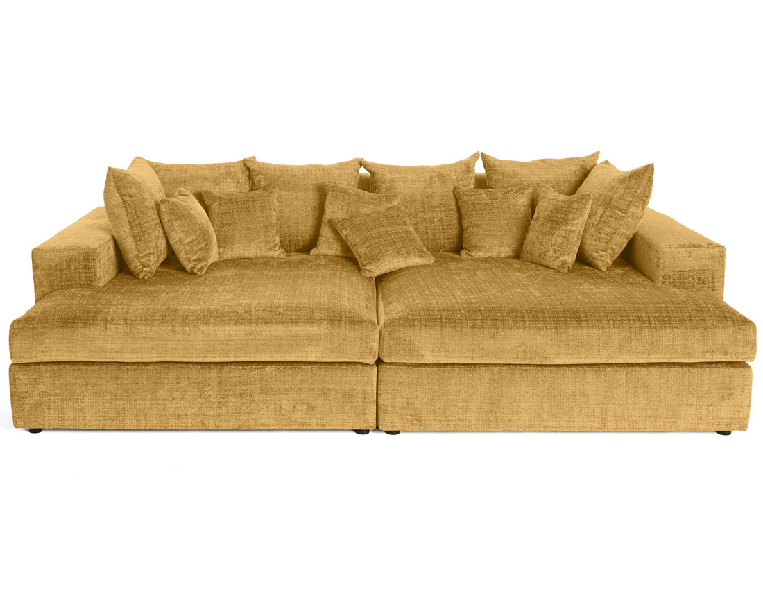 Collins - canapé droit 4 places avec double méridienne - assise profonde - en velours texturé