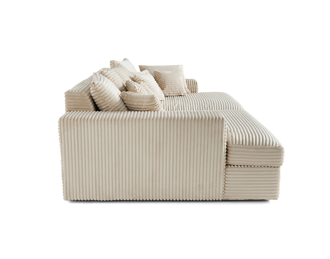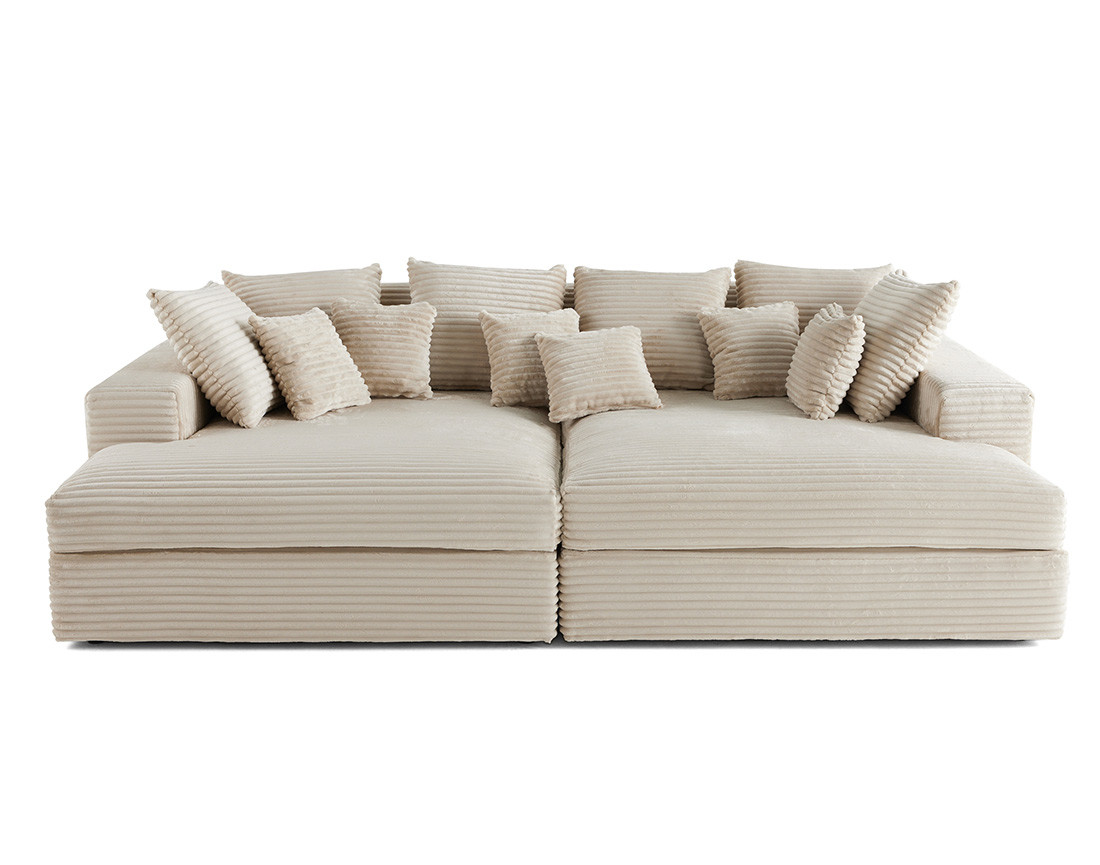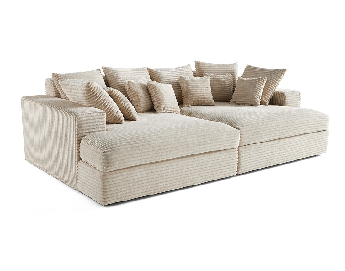 Collins - canapé droit 4 places avec double méridienne - velours côtelé grosses côtes