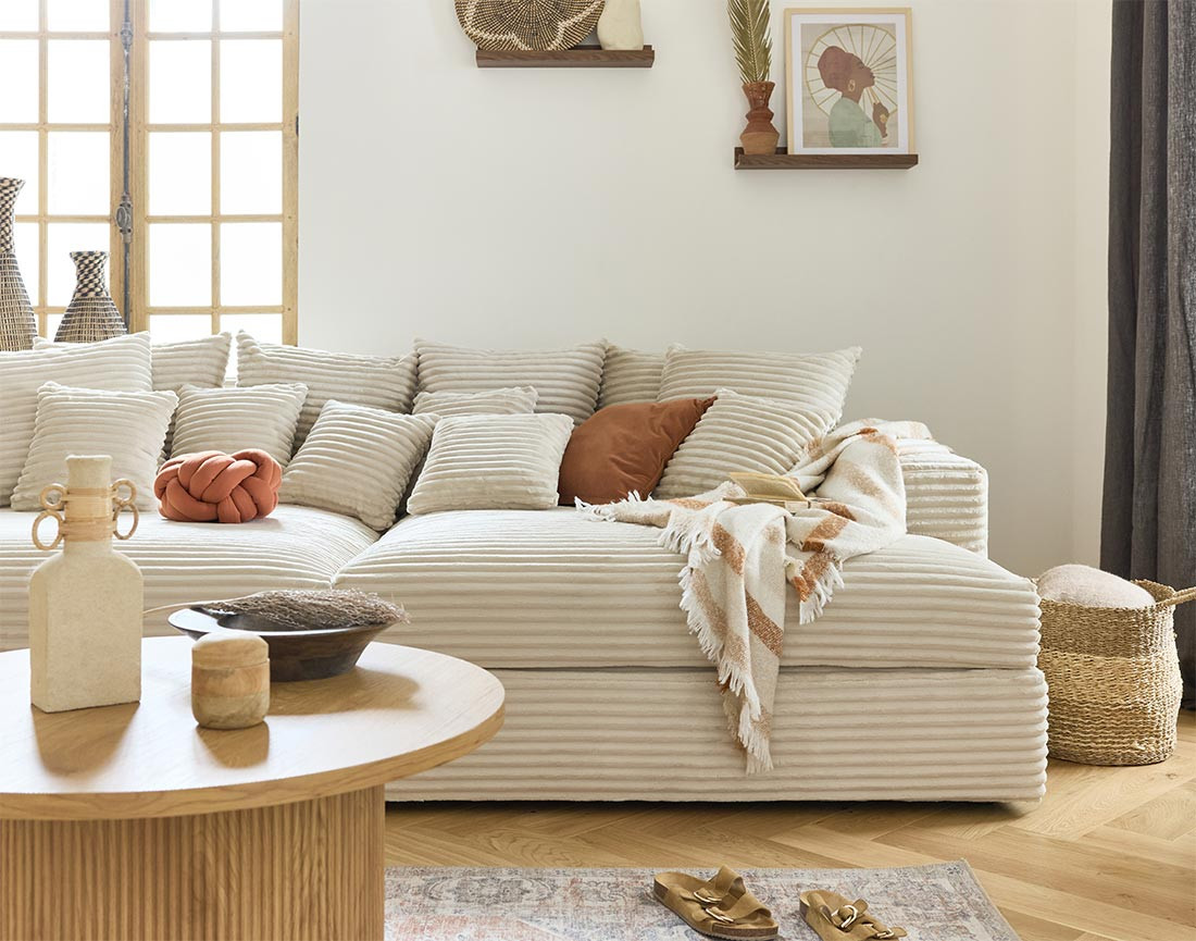 - Présentation de la collection : Enveloppez-vous dans une douceur inégalable avec le canapé Collins en velours côtelé à grosses côtes. Ce canapé ultra moelleux au confort exceptionnel deviendra la pièce maitresse de votre intérieur.