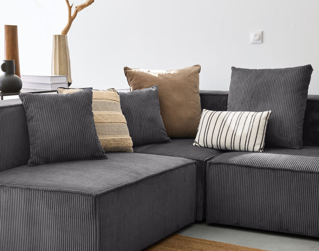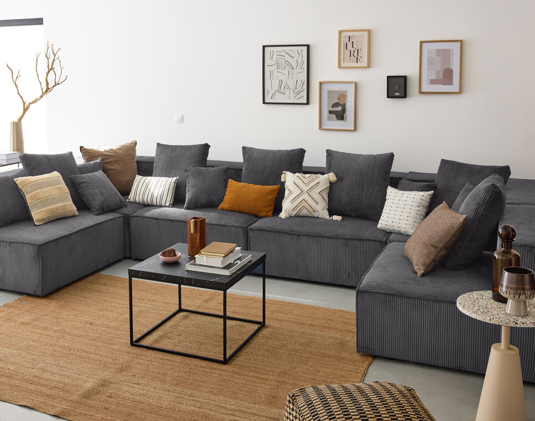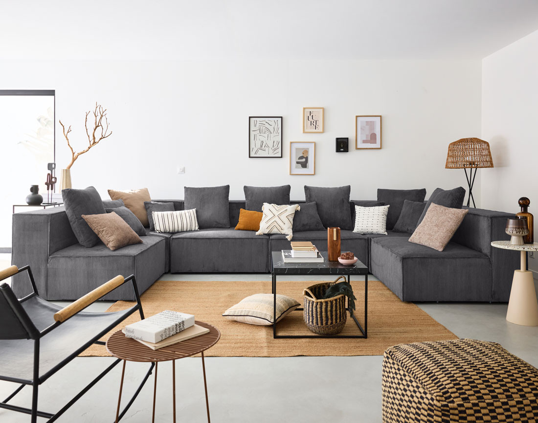Colombine - canapé modulable panoramique - 7 places - en velours côtelé