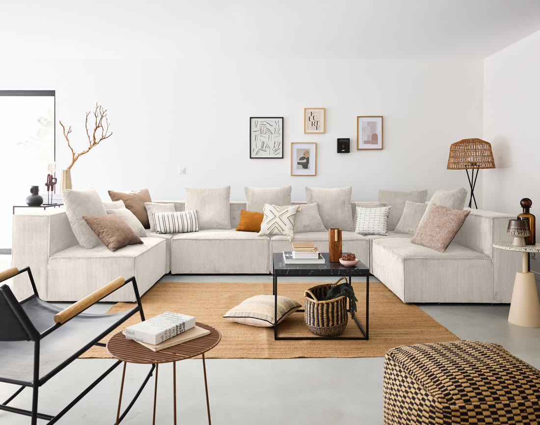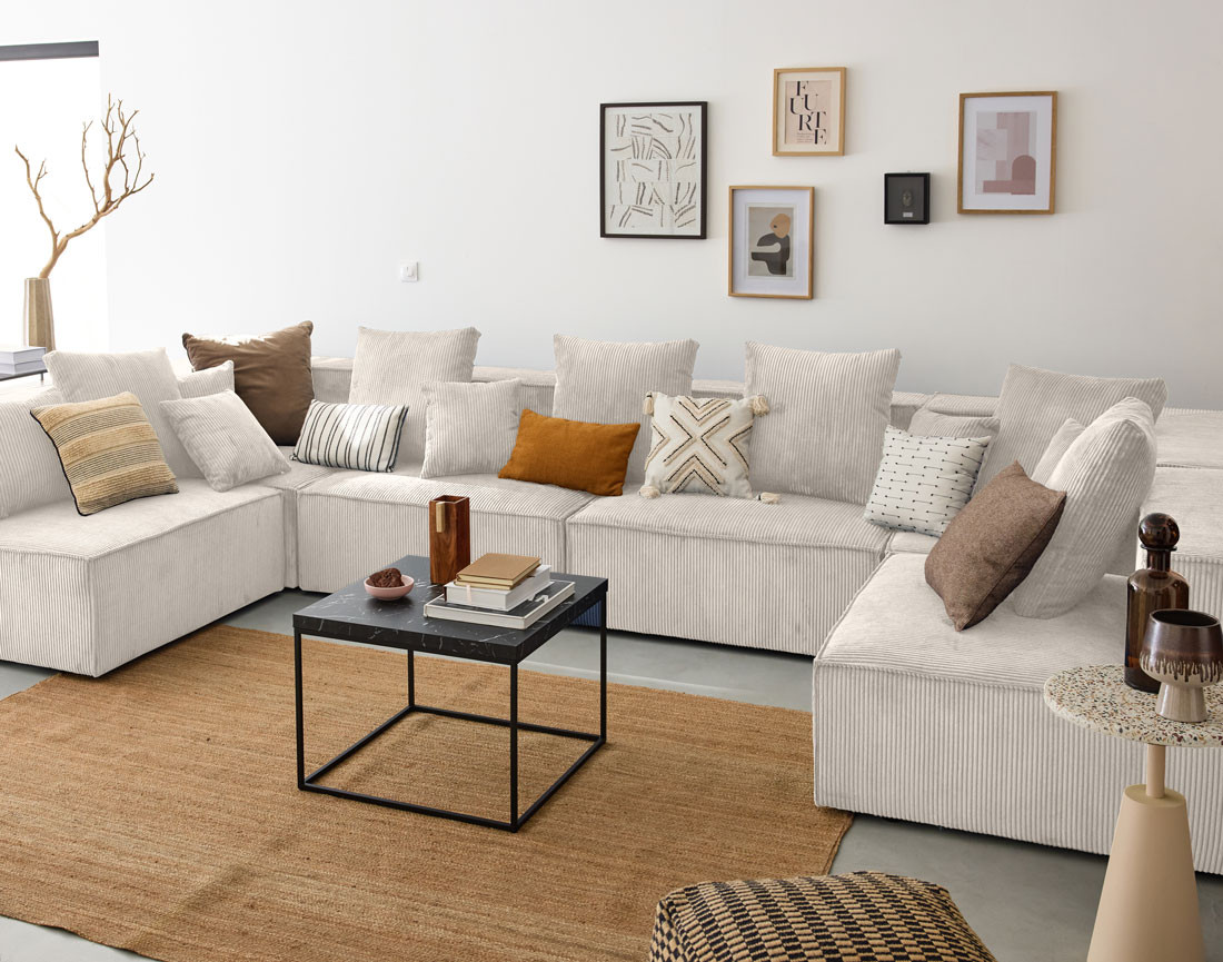 Colombine - canapé modulable panoramique - 7 places - en velours côtelé