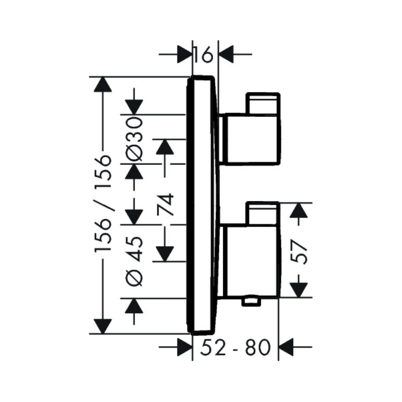 Caractéristiques du mitigeur thermostatique HANSGROHE encastré Ecostat Square :