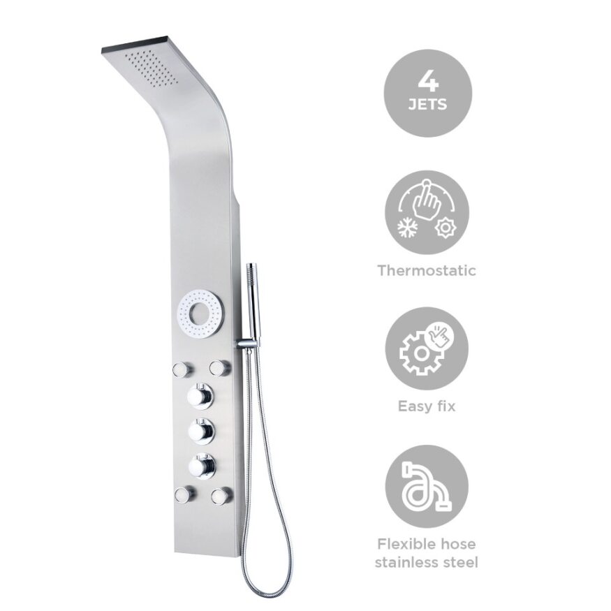 Colonne de Douche Hydromassante K2O Lusso Spa 20x7x140cm avec Robinet Thermostatique, 5 Jets, Effet Pluie