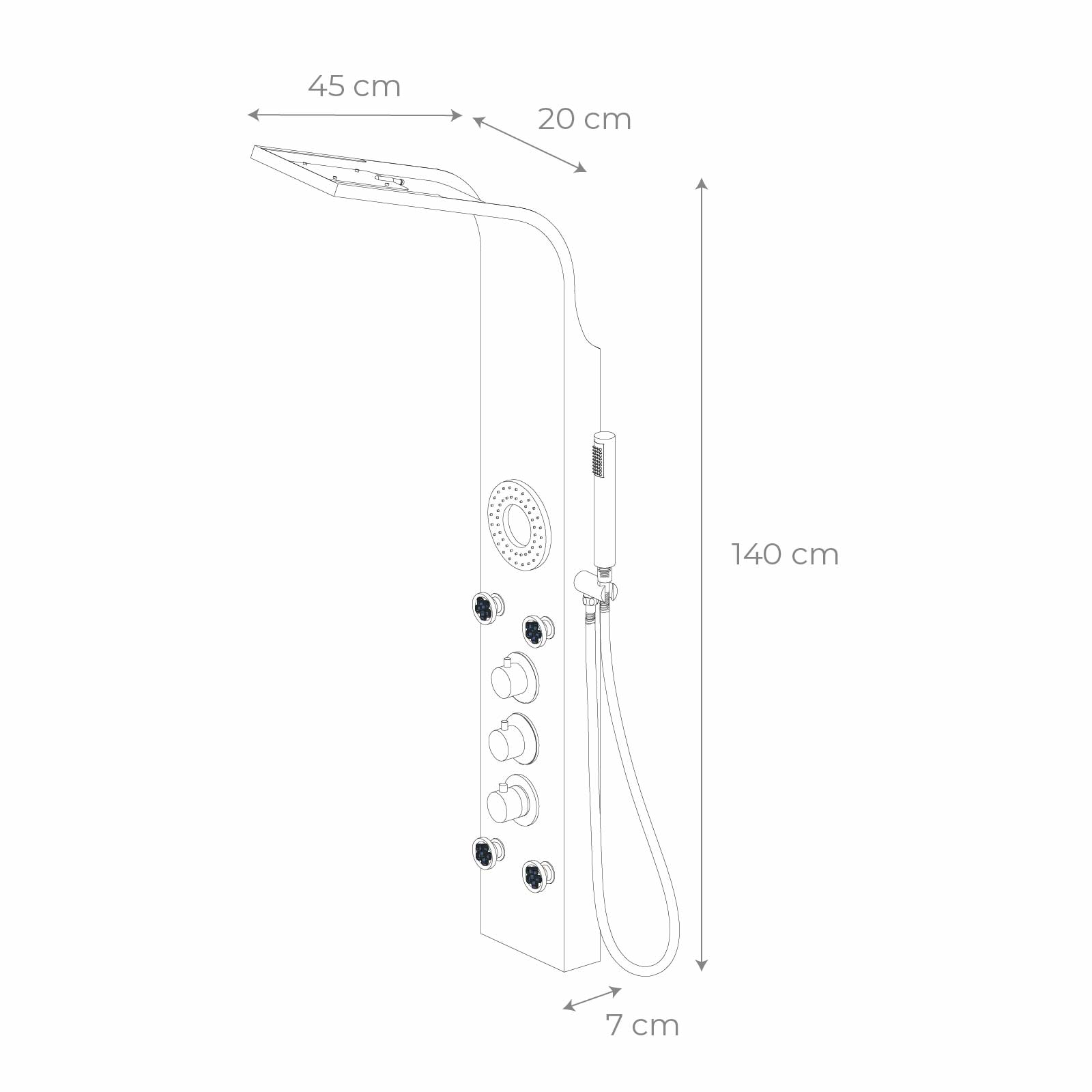 | Libellé | Colonne de Douche Hydromassante K2O Lusso Spa 20x7x140cm avec Robinet Thermostatique, 5 Jets, Effet Pluie, Douchette |