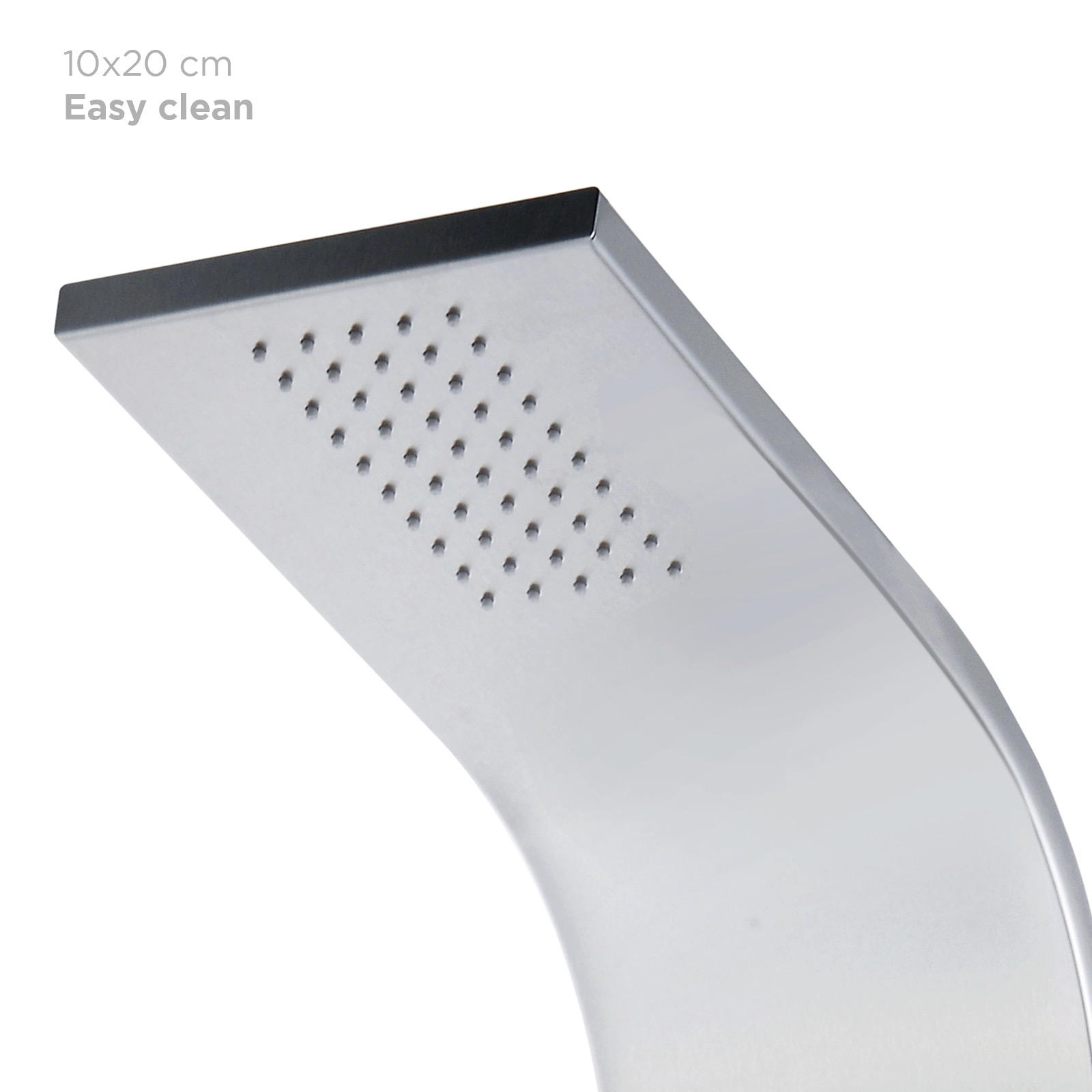 Passer le carrousel d'imagesLa colonne de douche hydromassante Lusso Spa de K2O est l'élément idéal pour améliorer la qualité de vos douches. Son design en acier inoxydable apportera de l'élégance à votre salle de bain pour une détente méritée. Avec son robinet thermostatique, vous pourrez choisir une température constante, mais vous économiserez aussi de l'énergie et jusqu'à 60% de votre consommation d'eau. Le pommeau supérieur et la douchette offrent un effet pluie. La douchette est équipée d'un tuyau flexible de 150 cm et d'un commutateur. Pour une expérience relaxante, la colonne inclut 5 jets hydromassants en ABS, résistant à la corrosion. La tête de douche a des picots anticalcaires en silicone facilitant son nettoyage. Et c'est très facile à installer ! *Il est recommandé de nettoyer la colonne avec une microfibre après utilisation. *NE PAS utiliser de produits abrasifs. Caractéristiques : - Dimensions : 20x7x140cm - Dimensions pommeau : 10x20cm - Longueur bras supérieur : 45cm - Couleur : acier brillant/miroir. - Matériau colonne de douche : acier inoxydable. - Matériau pommeau et douchette : ABS. - Matériau tuyau : acier inoxydable. - Matériau commutateur : laiton. - Jets (pommeau et douchette) : 1 chacun, effet pluie. - Hydromassage: 5 jets, ABS. - Poids : 7,3 kg - Tuyau : 150 cm, système anneau. - Robinet : thermostatique. - Mécanisme : cartouche métallique. - Connexion: flexibles de 50 cm fournis. - Montage : mural. - Nettoyage pommeau : picots anticalcaires en silicone. - Certifié : CE.