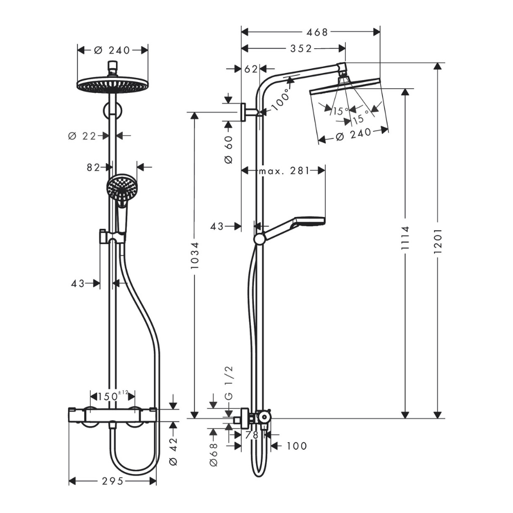 Caractéristiques techniques de la colonne de douche Crometta S 240 Hansgrohe