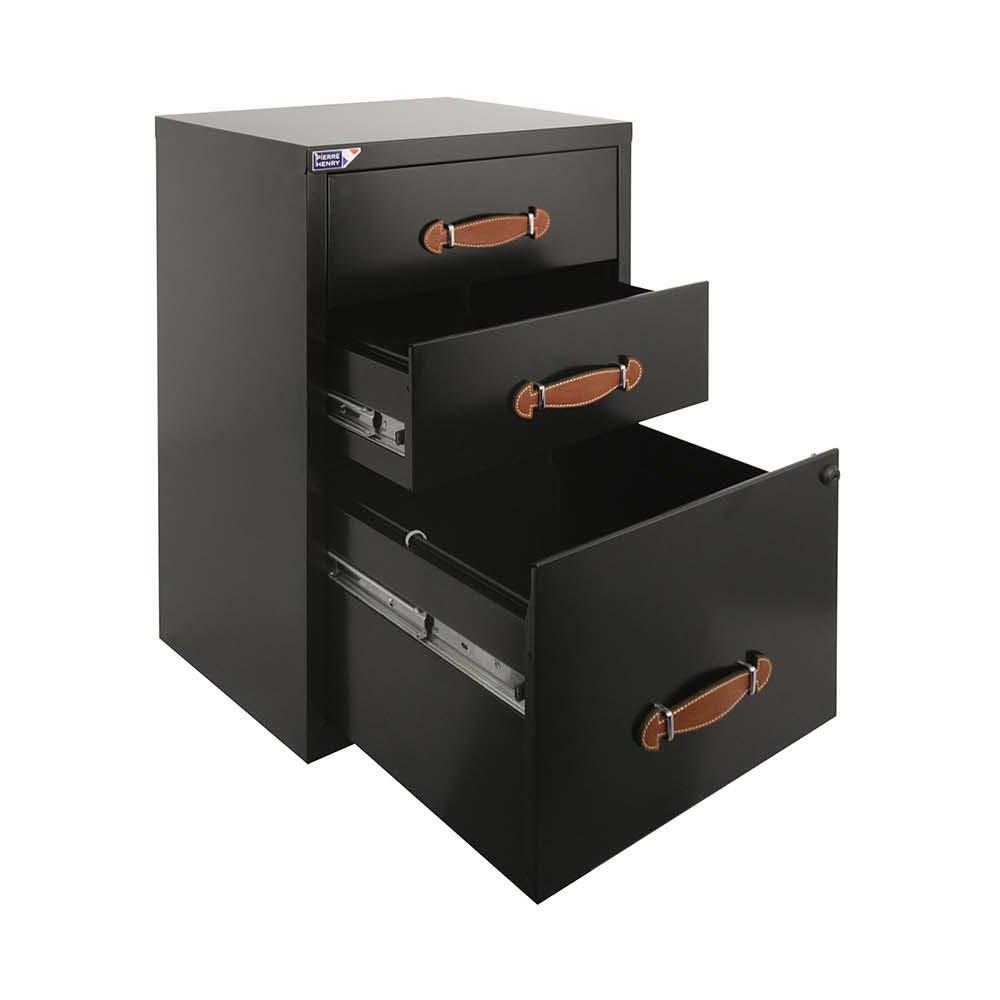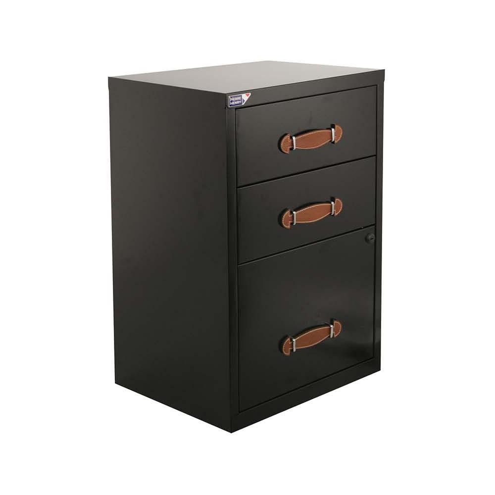 Colonne de rangement basse en acier 3 tiroirs Noir avec poignées en polyuréthane