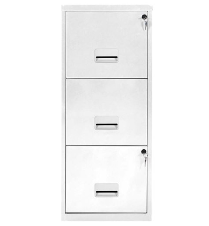 Colonne de rangement en métal Bolane H 96cm - 3 grands tiroirs avec serrure à clé-Couleur Gris clair