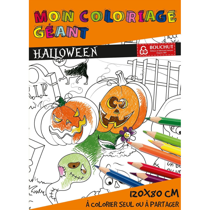 | Libellé | Coloriage - Halloween - Citrouille - Grand format - 120x80cm - Enfant - Bouchut |