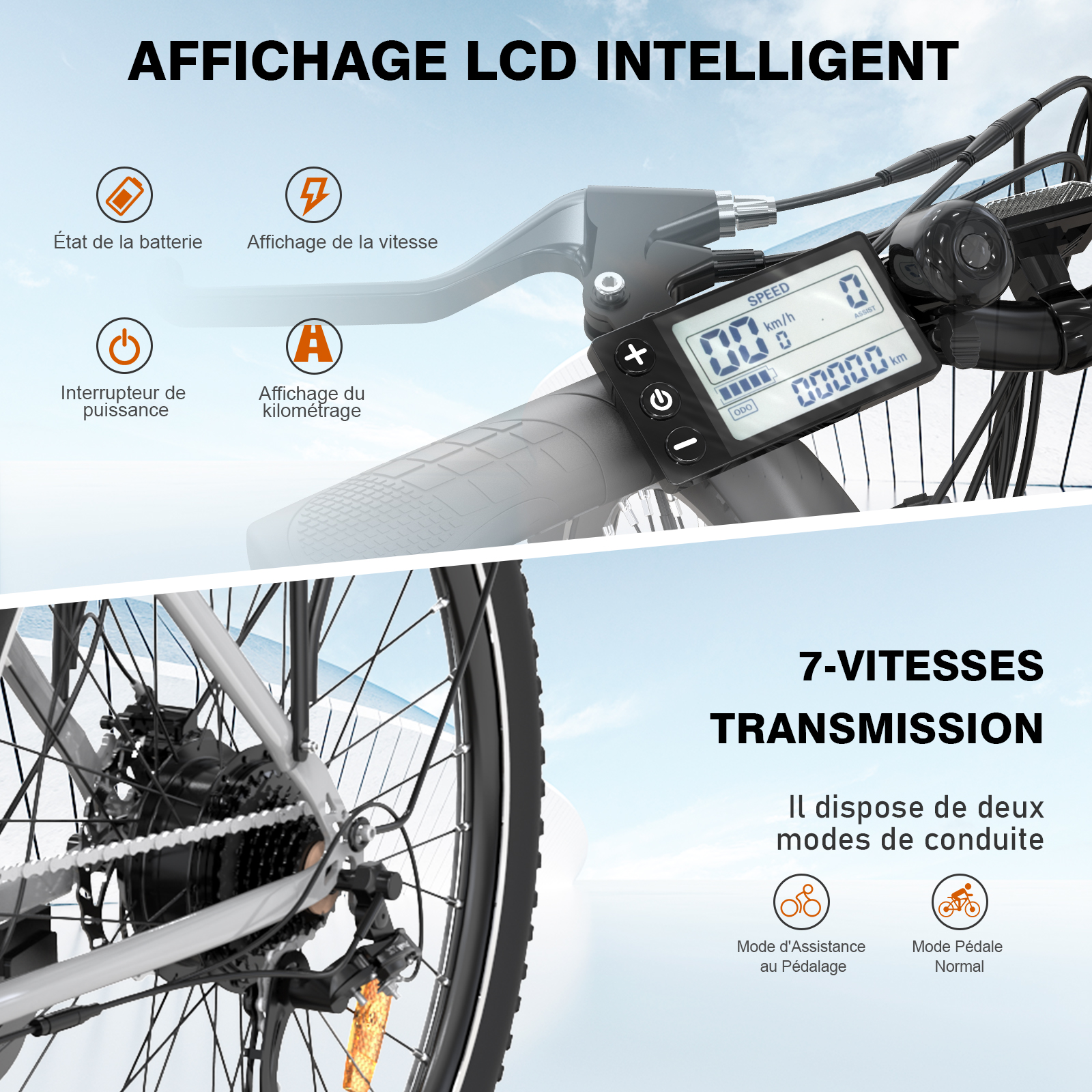 • Affichage du compteur:Écran LCD multifonctionnel