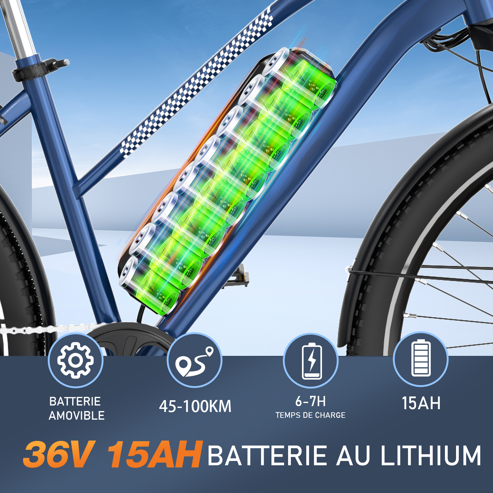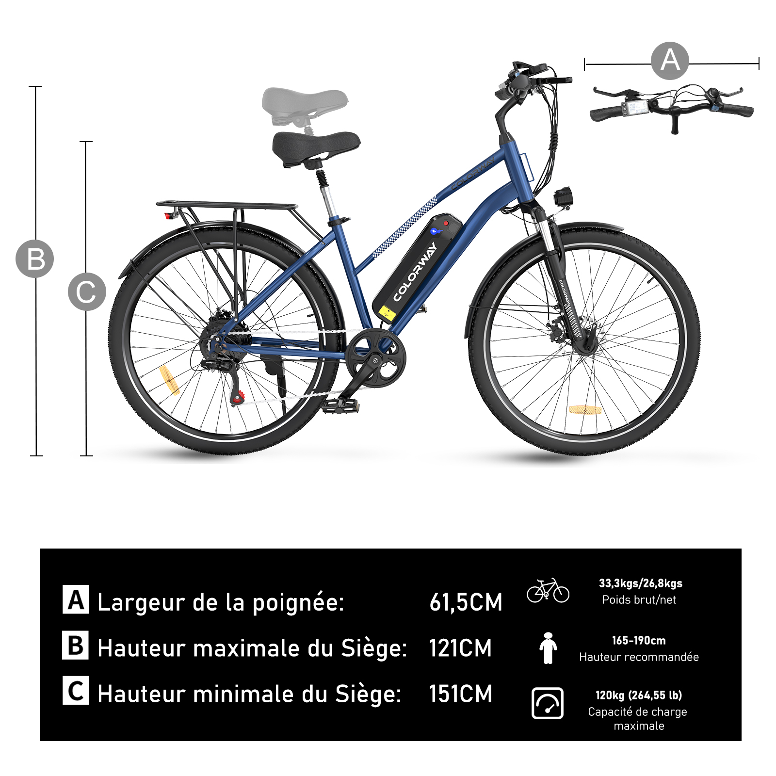 | Libellé | COLORWAY Vélo Électrique 28" VAE - Batterie amovible 36V 15Ah - Moteur 250W - Shimano 7 Vitesses - E-BIKE VTT Bleu |