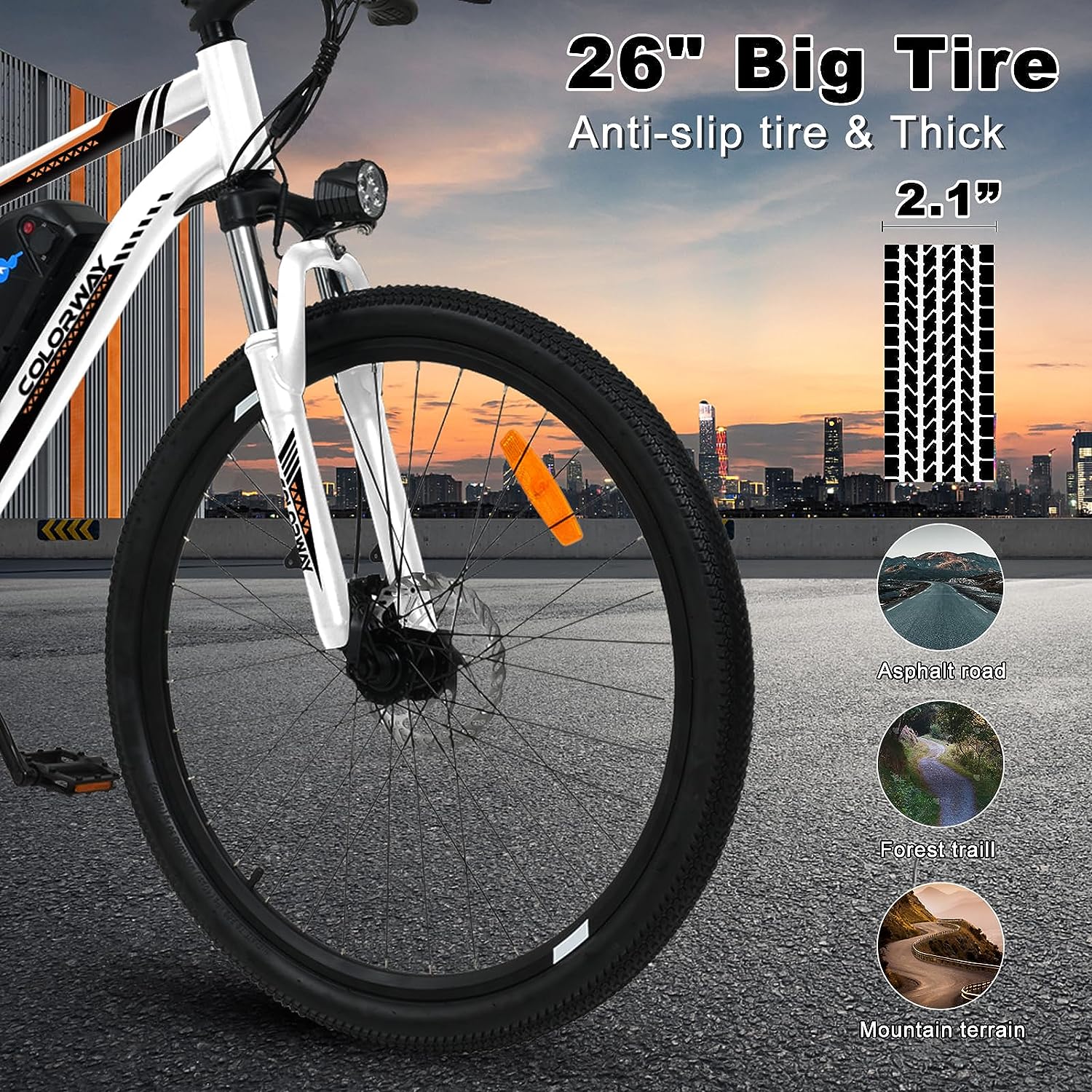 ✔️Spécifications des pneus:Pneus pneumatiques;Pneu 26×2.125;Valve d’air:26×2.125 La valve de la chambre à air est AV.