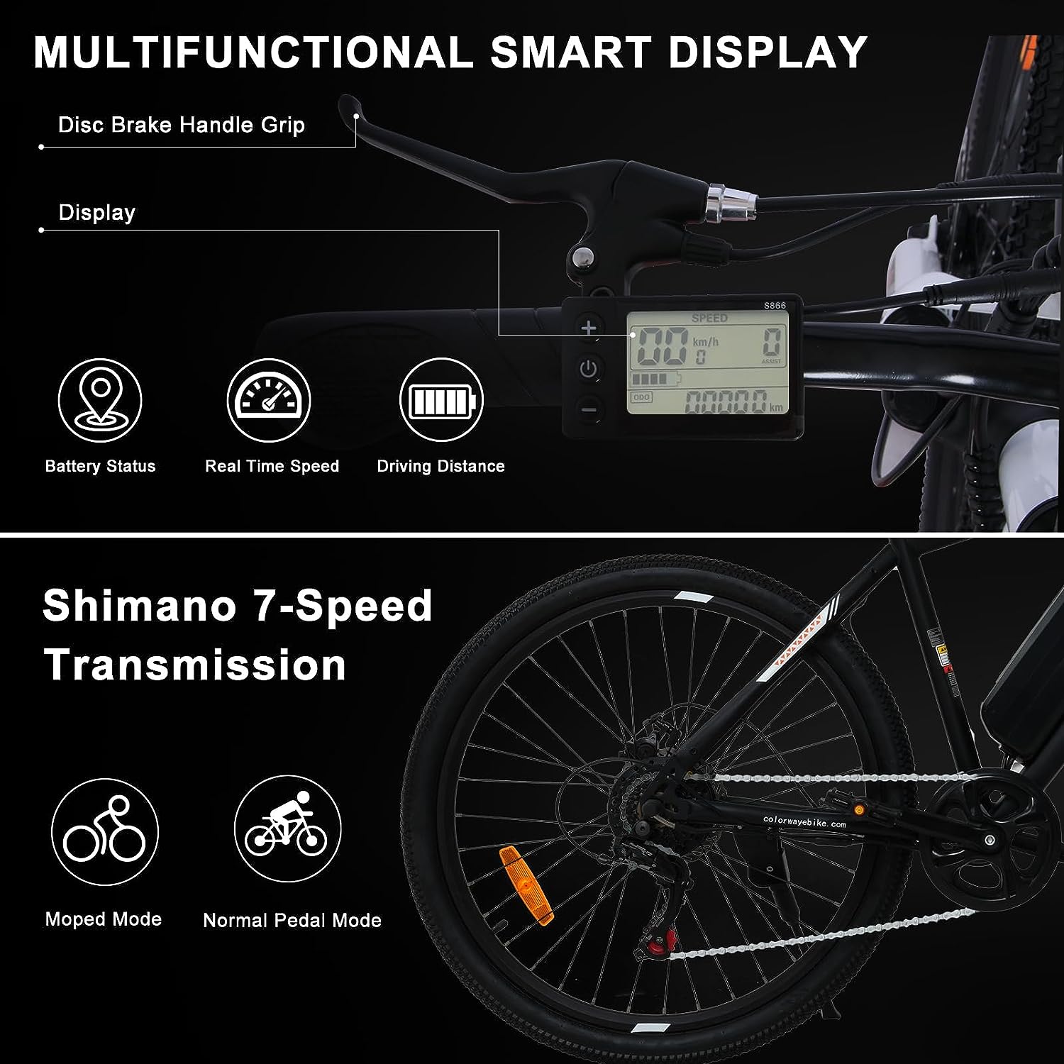 COLORWAY Vélo Électrique, VTT 26" E-Bike Vélo Assistance Électrique 36V 15Ah,7 Vitesses Blanc