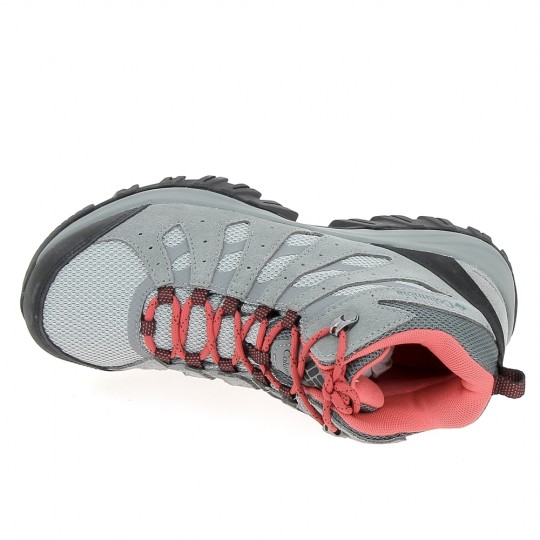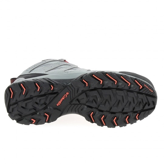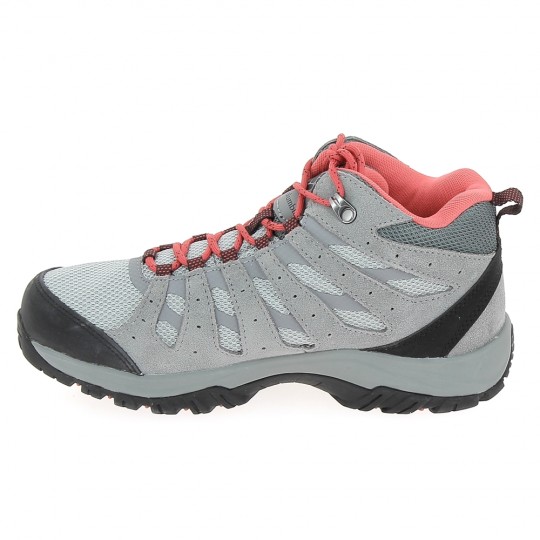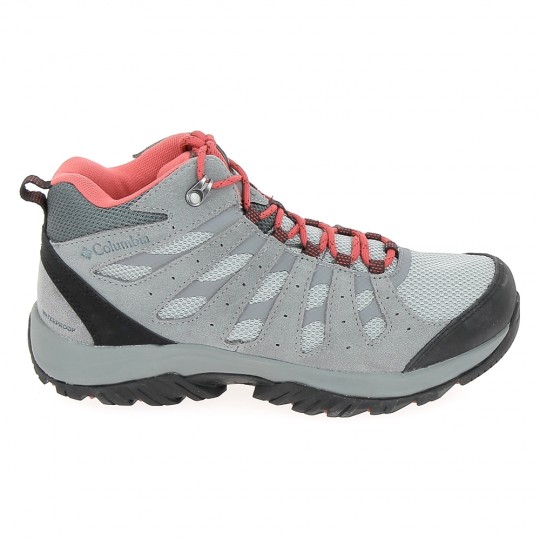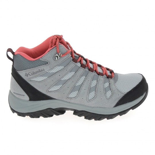 Chaussure de randonnée Columbia étanche pour femmes, modèle REDMOND III Water Proof, couleur gris et rouge