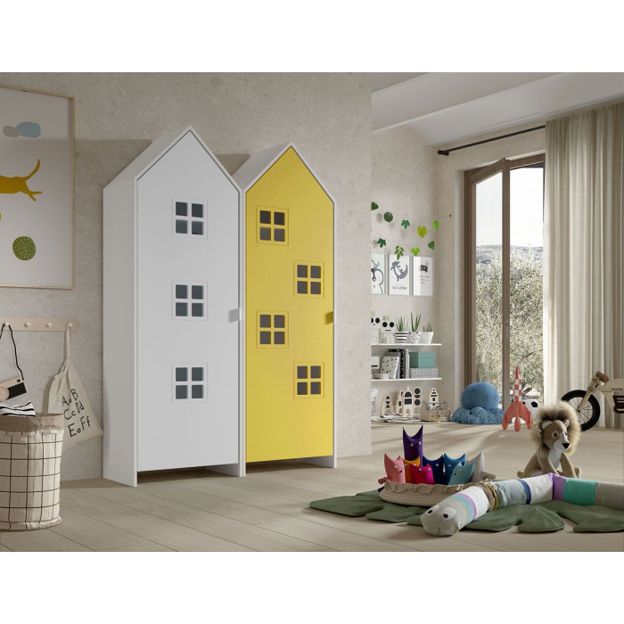 Cette combinaison se compose de 2 armoires : 1 armoire CASAMI BRUGES avec porte en More Yellow et 1 armoire avec porte blanche. Les armoires de la collection CASAMI, en forme de cabane de plage, ajoutent immédiatement une touche ludique et colorée à n'importe quelle chambre d'enfant et offrent également l'espace de rangement nécessaire pour les vêtements, les jouets et de nombreux autres objets.