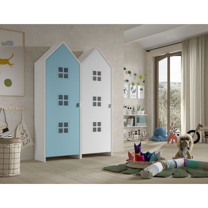 Cette combinaison se compose de 2 armoires : 1 armoire CASAMI BRUGES avec porte en Blue Ballet et 1 armoire avec porte blanche. Les armoires de la collection CASAMI, en forme de cabane de plage, ajoutent immédiatement une touche ludique et colorée à n'importe quelle chambre d'enfant et offrent également l'espace de rangement nécessaire pour les vêtements, les jouets et de nombreux autres objets.