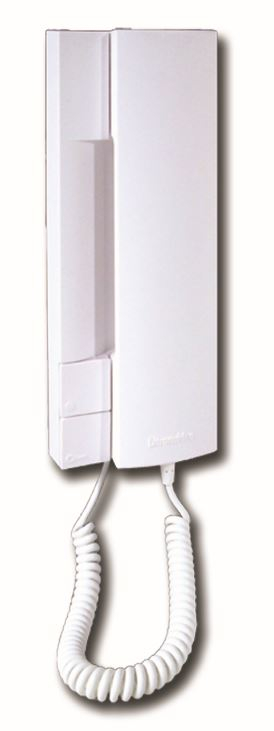 Ce modèle dispose de réglages indépendants de la phonie montante et descendante, ainsi que du niveau d'appel et de la fonction d'exclusion. Le combiné comprend deux boutons de commande dont une touche ouvre-porte et une touche additionnelle à contact NO, permettant la gestion de fonctions annexes selon les besoins du site.