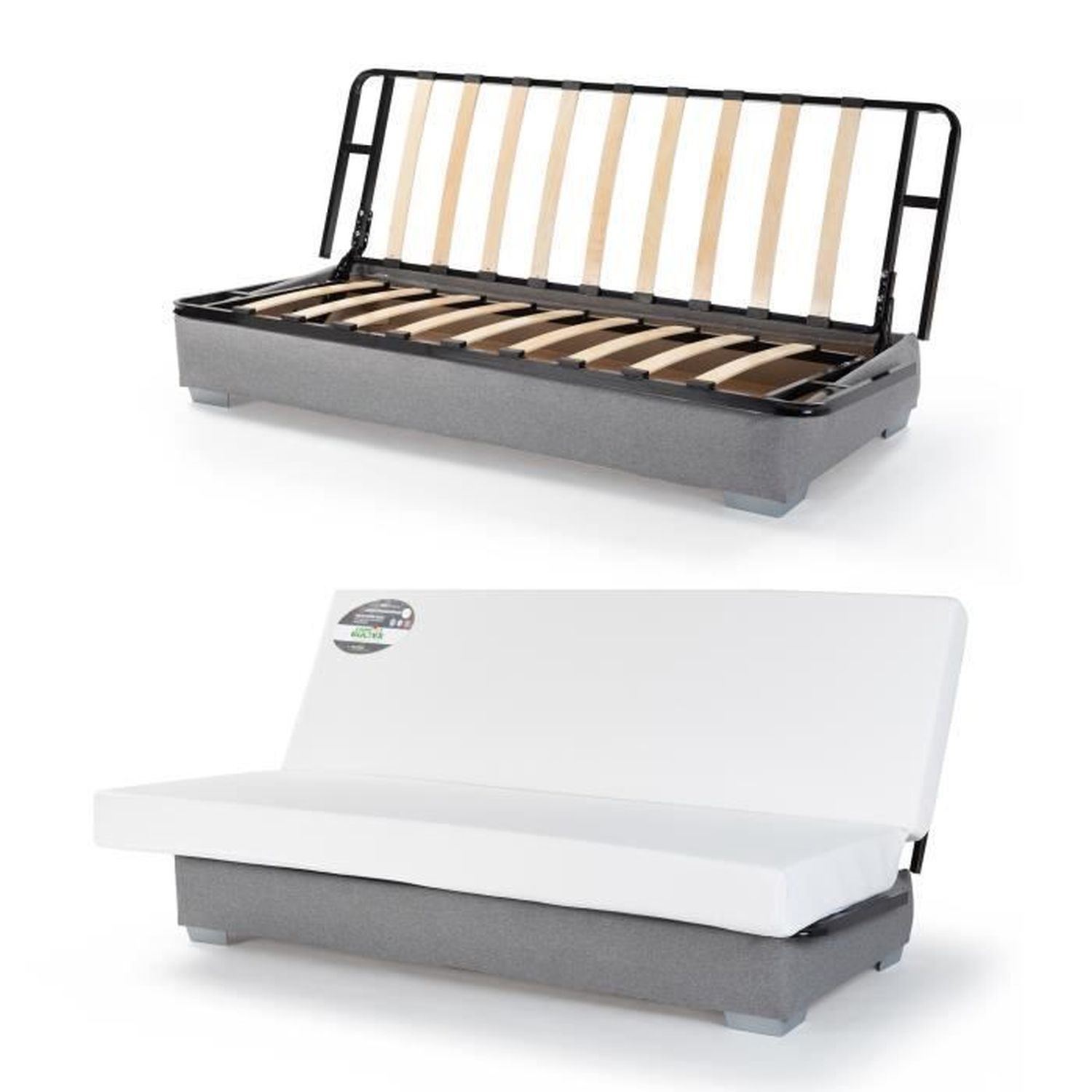 | Libellé | COMFORT BULTEX Banquette clic clac - Tissu Gris + Coussins déco rose - 193 x 9 |