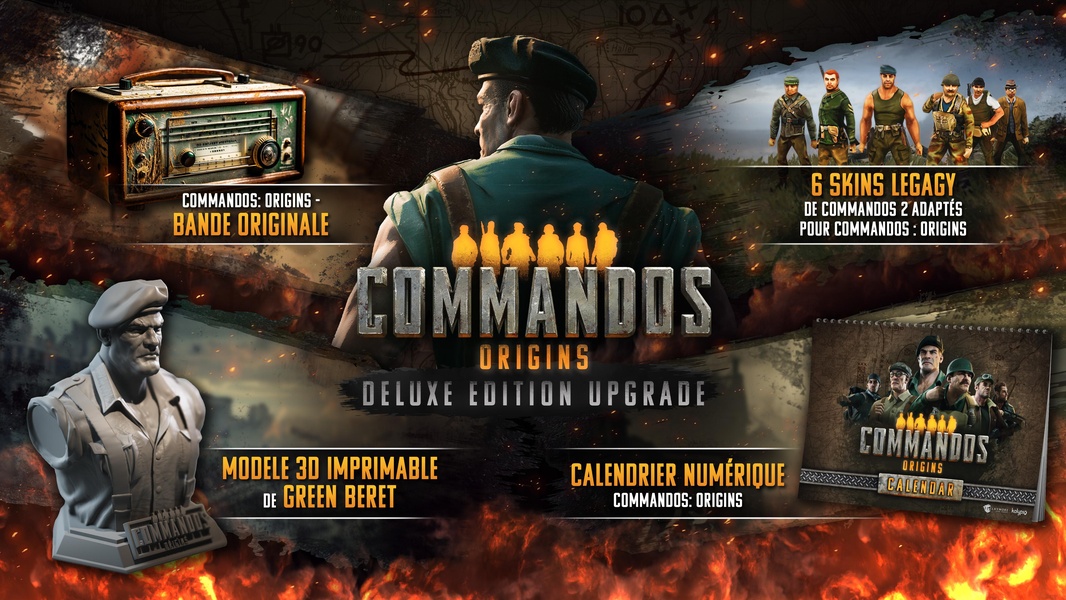 Contenu bonus : Comprend la bande sonore originale, skins heritage, calendrier numérique et modèle 3D unique à imprimer. Commandos: Origins, la très attendue suite de la série Commandos, vous ramène aux origines des jeux de stratégie en temps réel. Dans l'ombre des moments charnières de l'Histoire, ceux où naissent les héros et se forgent les légendes, un nouveau chapitre vous attend. Votre mission ne pourra être menée à bien qu'avec une planification minutieuse et un habile équilibre entre furtivité et destruction, quelques-unes des qualifications uniques de la troupe d'élite. Comprend la bande sonore originale, skins heritage, calendrier numérique et modèle 3D unique à imprimer. Features: - Gameplay exigeant de stratégie furtive en temps réel : tirez le meilleur parti des expertises uniques de vos commandos, infiltrez les installations ennemies et frappez là où ça fait mal avant de disparaître dans l'ombre.