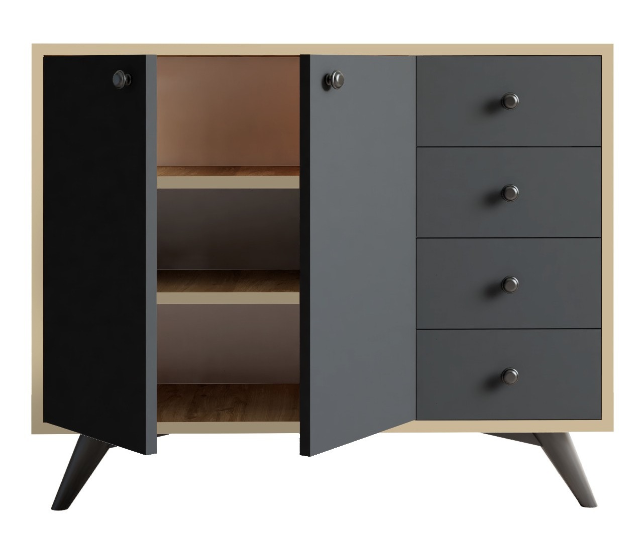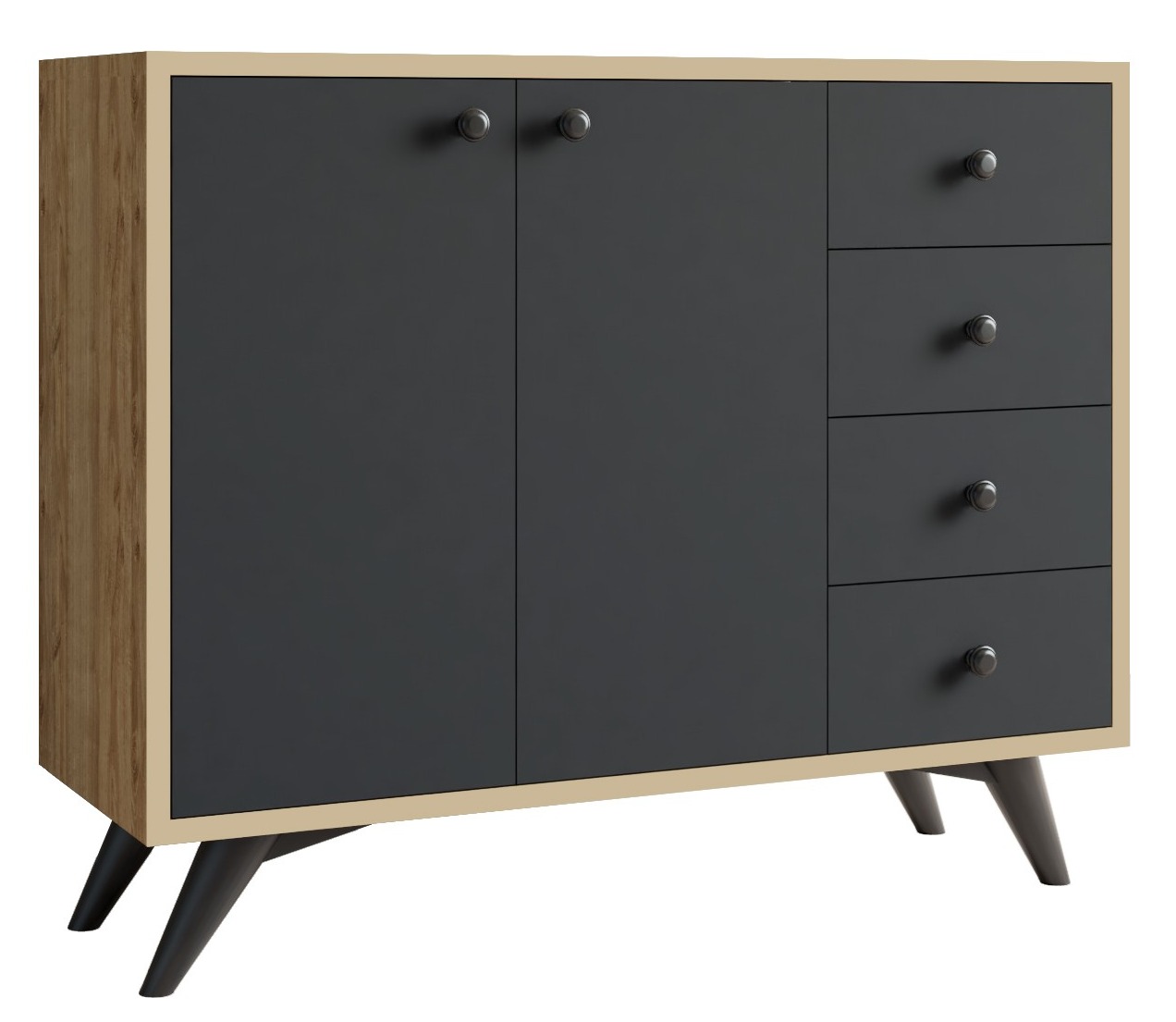 Commode 2 portes 4 tiroirs chêne clair et anthracite 100cm