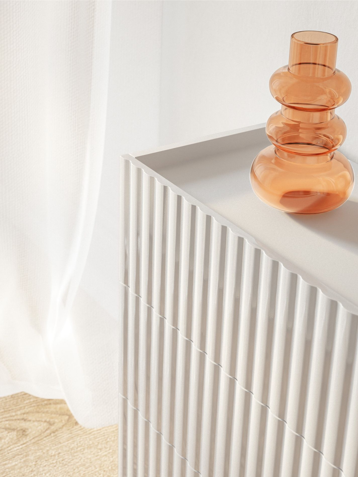 Commode avec façade rainurée marquanteCorps en panneau de particules stratifié robuste avec chants ABS solides