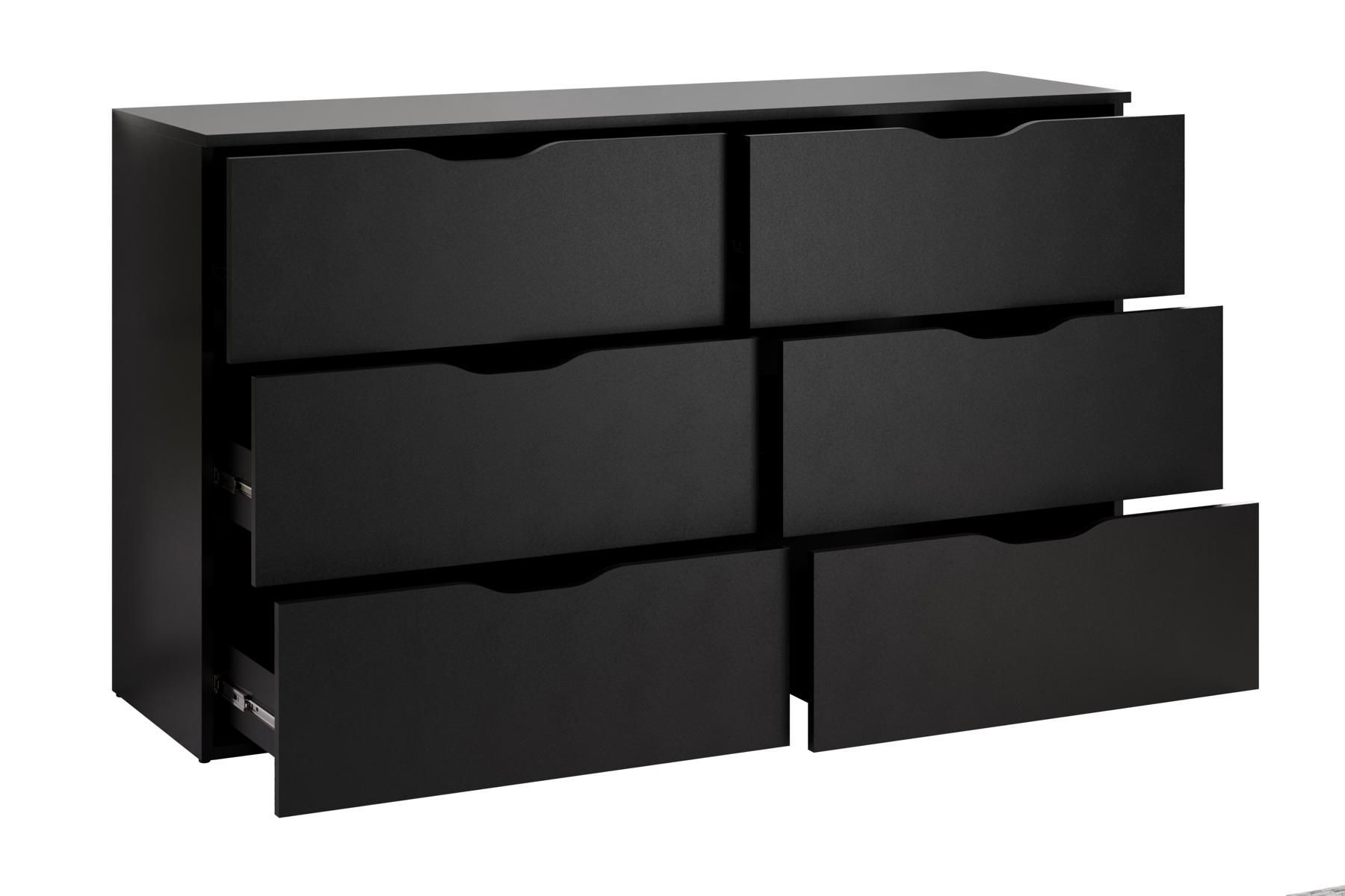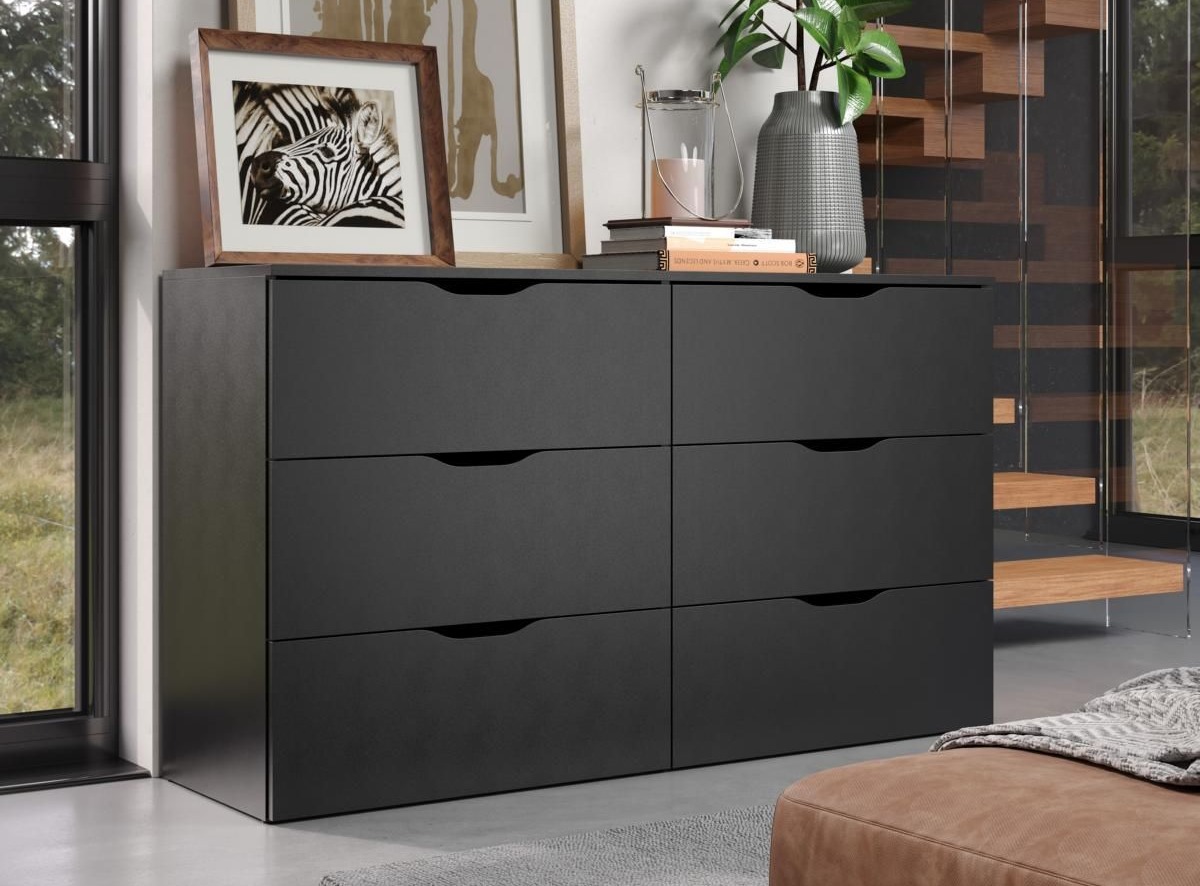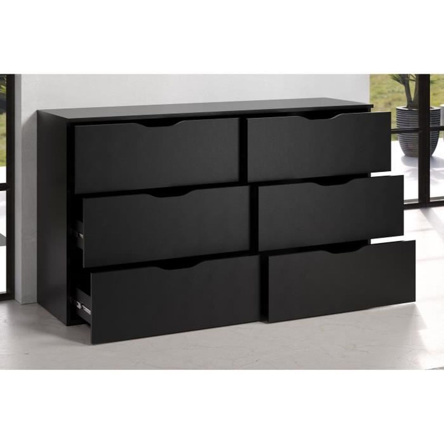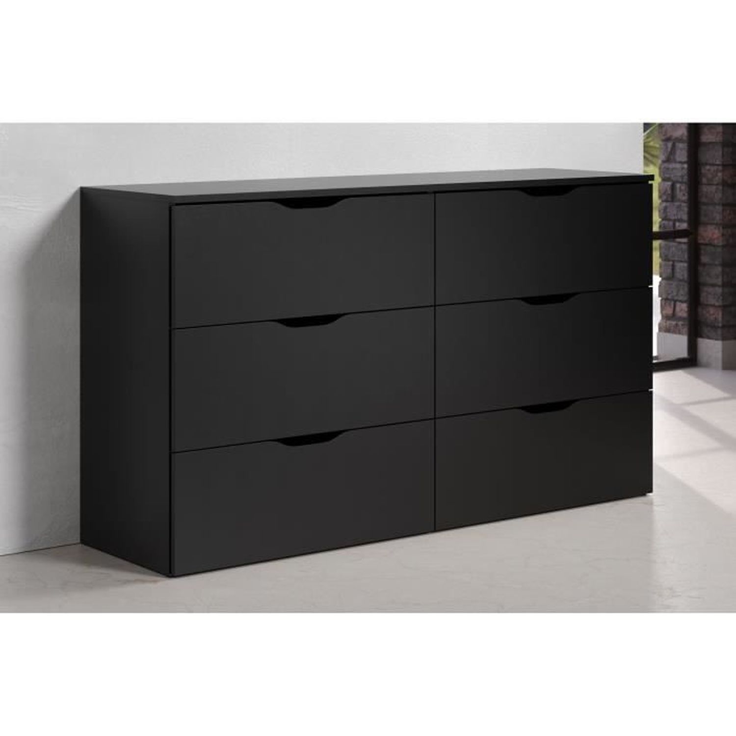 D'un très beau noir, cette commode saura vous impressionner mais surtout apporter un style moderne et sobre à votre maison. Ses 6 tiroirs vous aideront nettement dans le rangement de vos affaires et vous serez comblé. Matière : Bois laqué Coloris : Noir Dimensions : L 139 x P 40 x H 80 cm Fabrication : Allemande Garantie : 5 ans