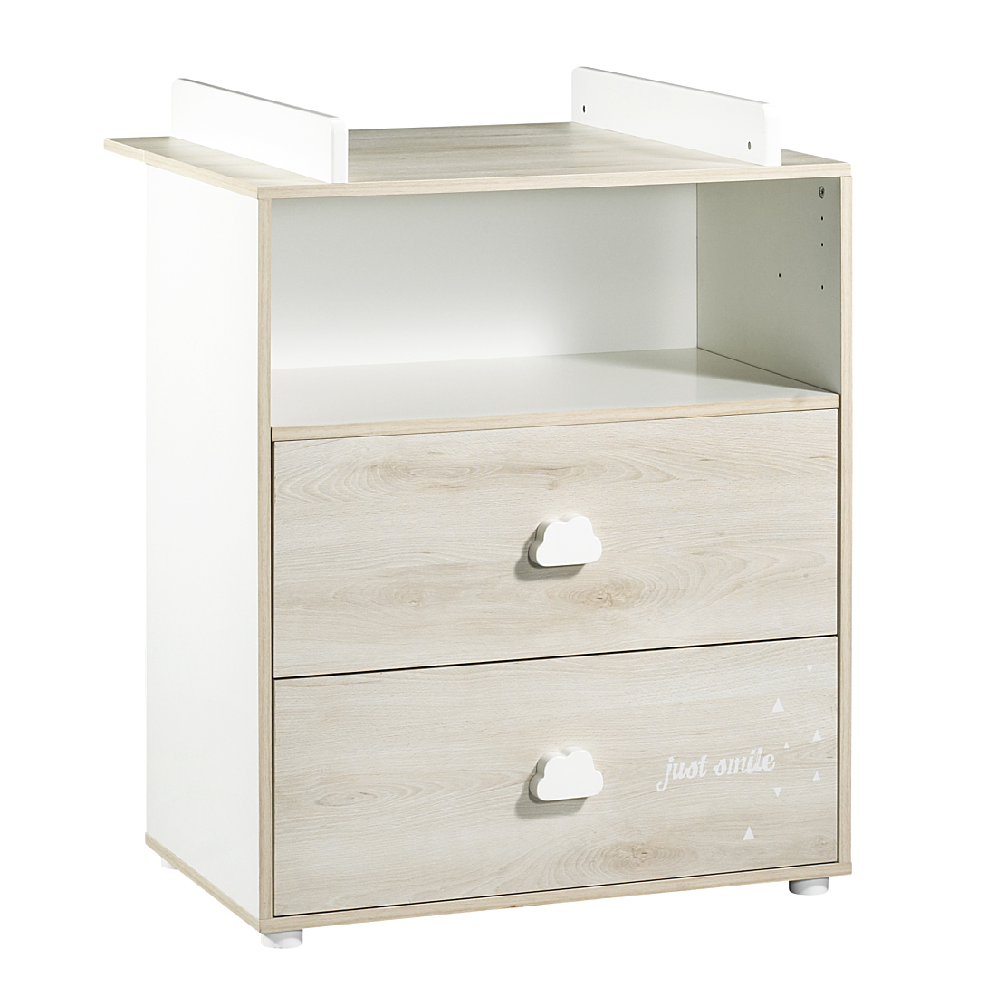 | Libellé | Commode à langer 2 tiroirs 1 niche Hêtre Cendré - SMILE |