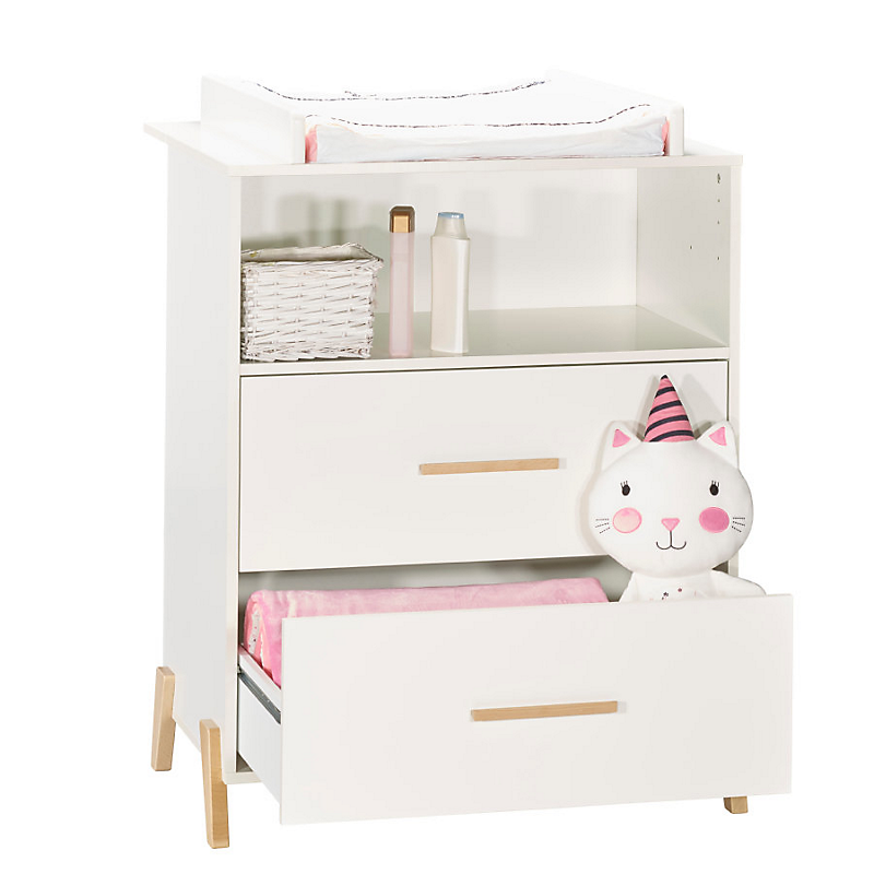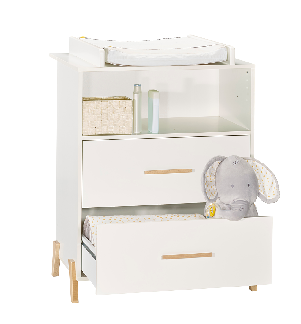 | Libellé | Commode à langer 2 tiroirs et 1 niche pieds gris - JOY NATUREL |