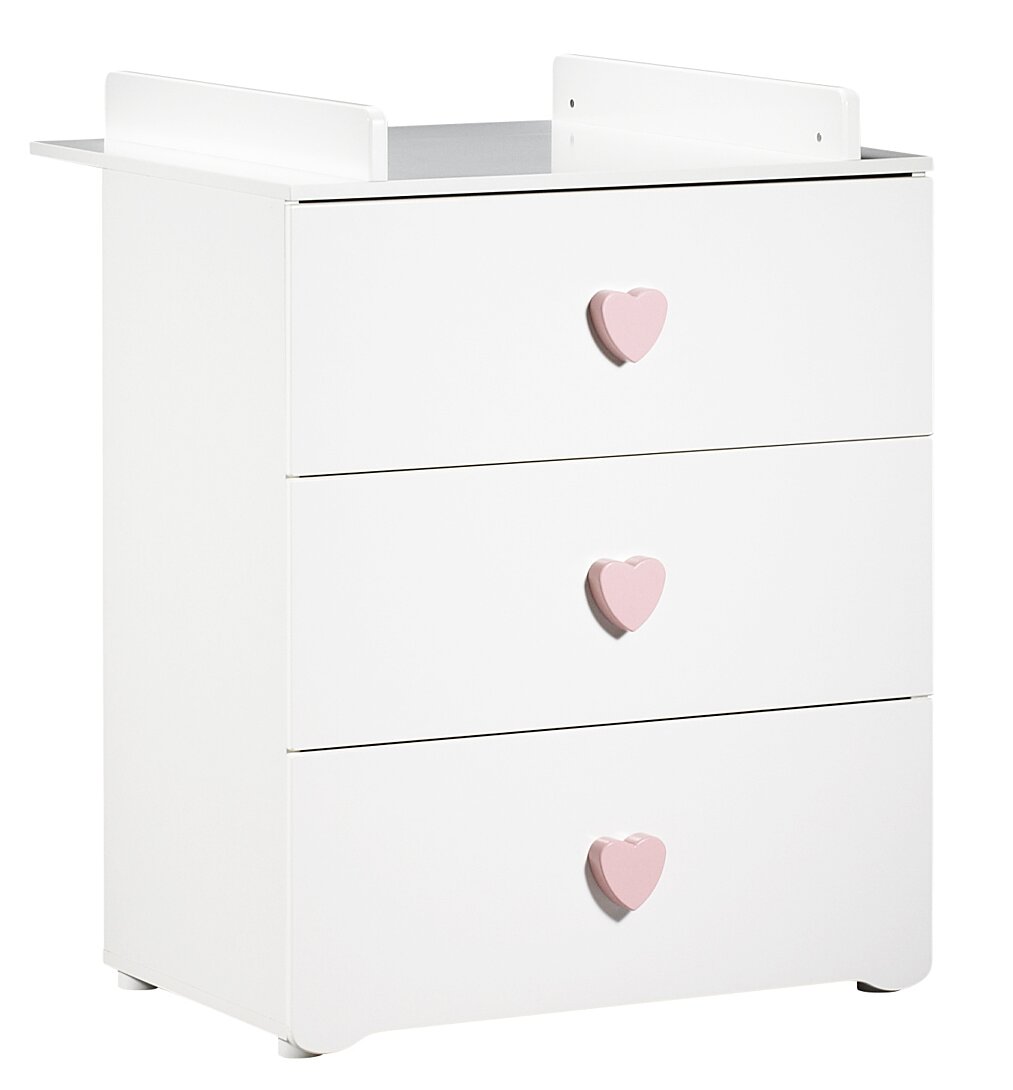| Libellé | Commode à langer 3 tiroirs - Boutons coeur rose |
