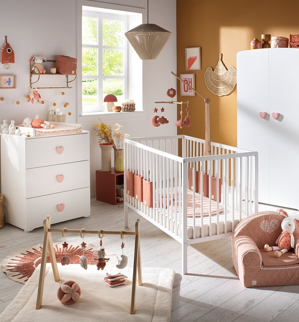 Commode à langer 3 tiroirs - Boutons coeur rose NEW BASIC Commode 3 tiroirs boutons "coeur" rose tendre avec dispositif à langer (amovible) inclus Une collection essentielle pour l'arrivée de bébé, laquée blanc et agrémentée de boutons "coeur" rose tendre. Idéal pour ranger les affaires de bébé. Assortie aux lits 1P032, 1P035 & 1P113 et à l'armoire 2 portes référence 1P193. Garantie sans solvant. Panneaux garantis avec une teneur en formaldéhydes <=8 mg. Fabrication française. Dimensions: 76 x 97 x 66 Conforme à la norme NF EN 12221 n°1 & 2 (2008)+ A1 octobre 2013 Composition: Panneau de particules mélaminé blanc / Panneau de fibres de moyenne densité (MDF) laqué blanc / Panneau de fibres dures blanc / Boutons "coeur" rose tendre en MDF. Conseils d'entretien Dépoussiérage chiffon sec : ni alcool, ni solvant. Tâches rebelles : éponge légèrement humide. Meuble à monter soi-même