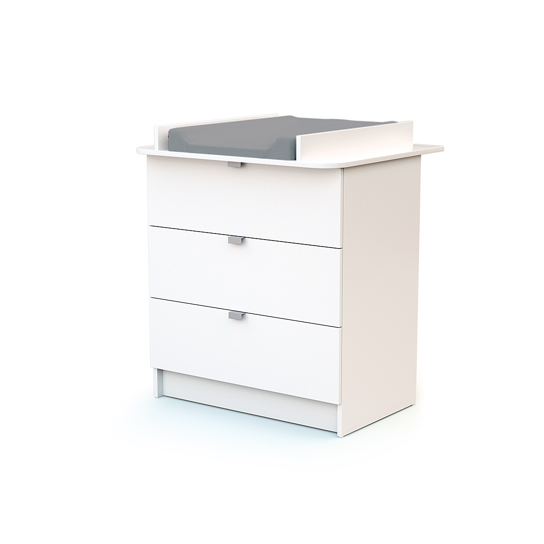 Commode de rangement avec plan à langer. Une commode aux formes ludiques et enfantines pour une déco tout en douceur dans la chambre de bébé. Avec ses 3 tiroirs et son plan à langer amovible, elle évolue au rythme de l’enfant et sera utile longtemps.
