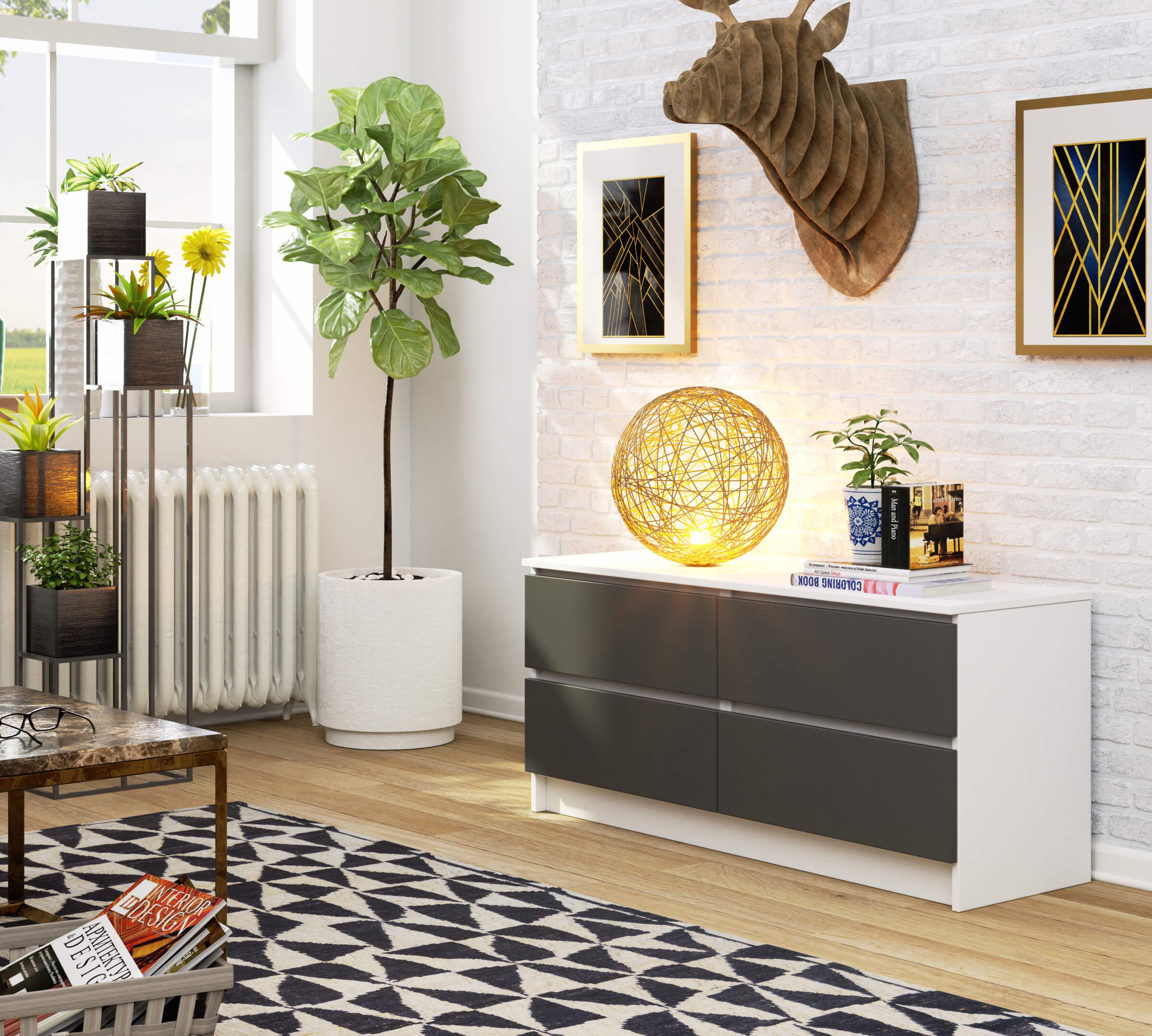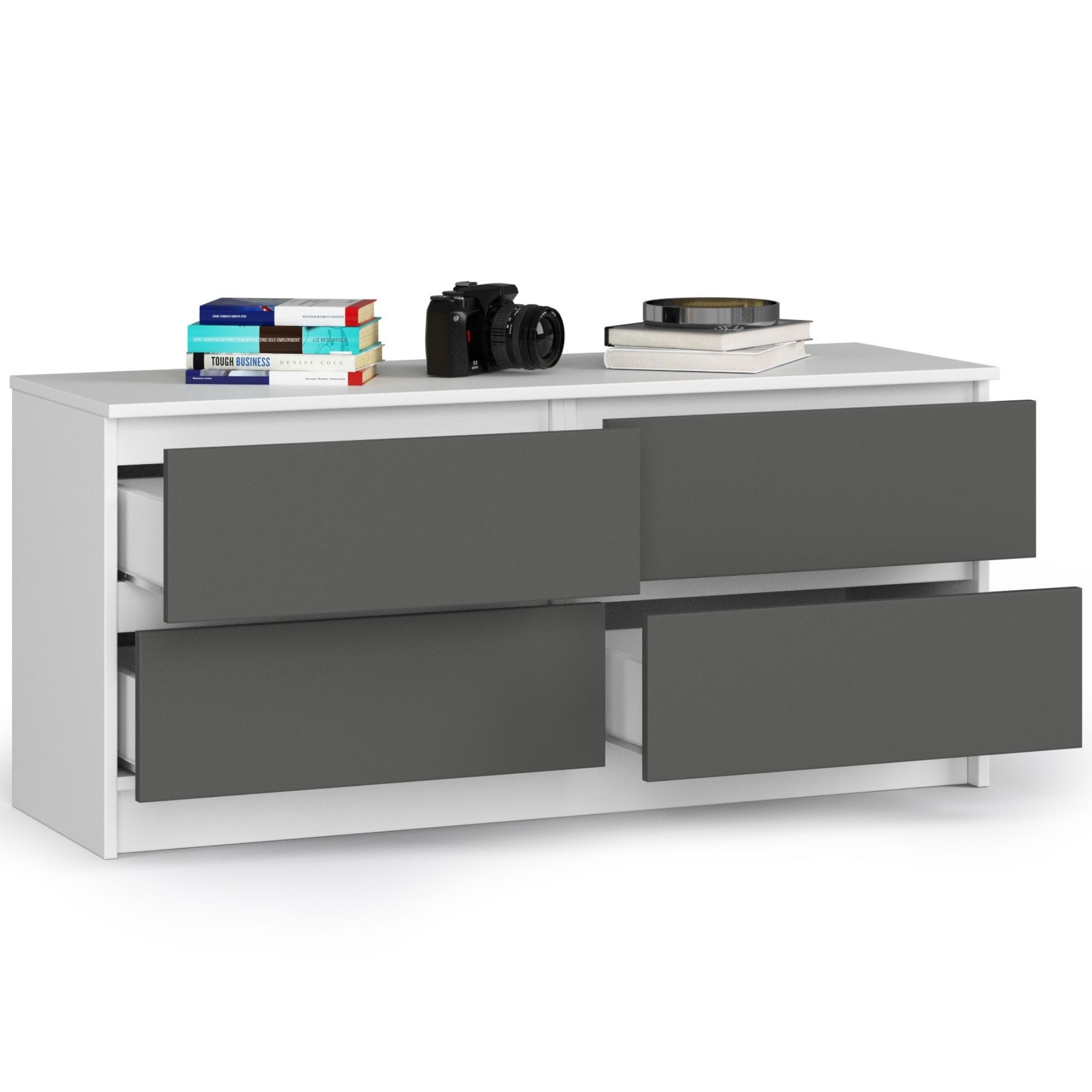 Commode AKORD K120 Blanche 120 cm 4 tiroirs façade Gris Graphite 120x40x55 cm