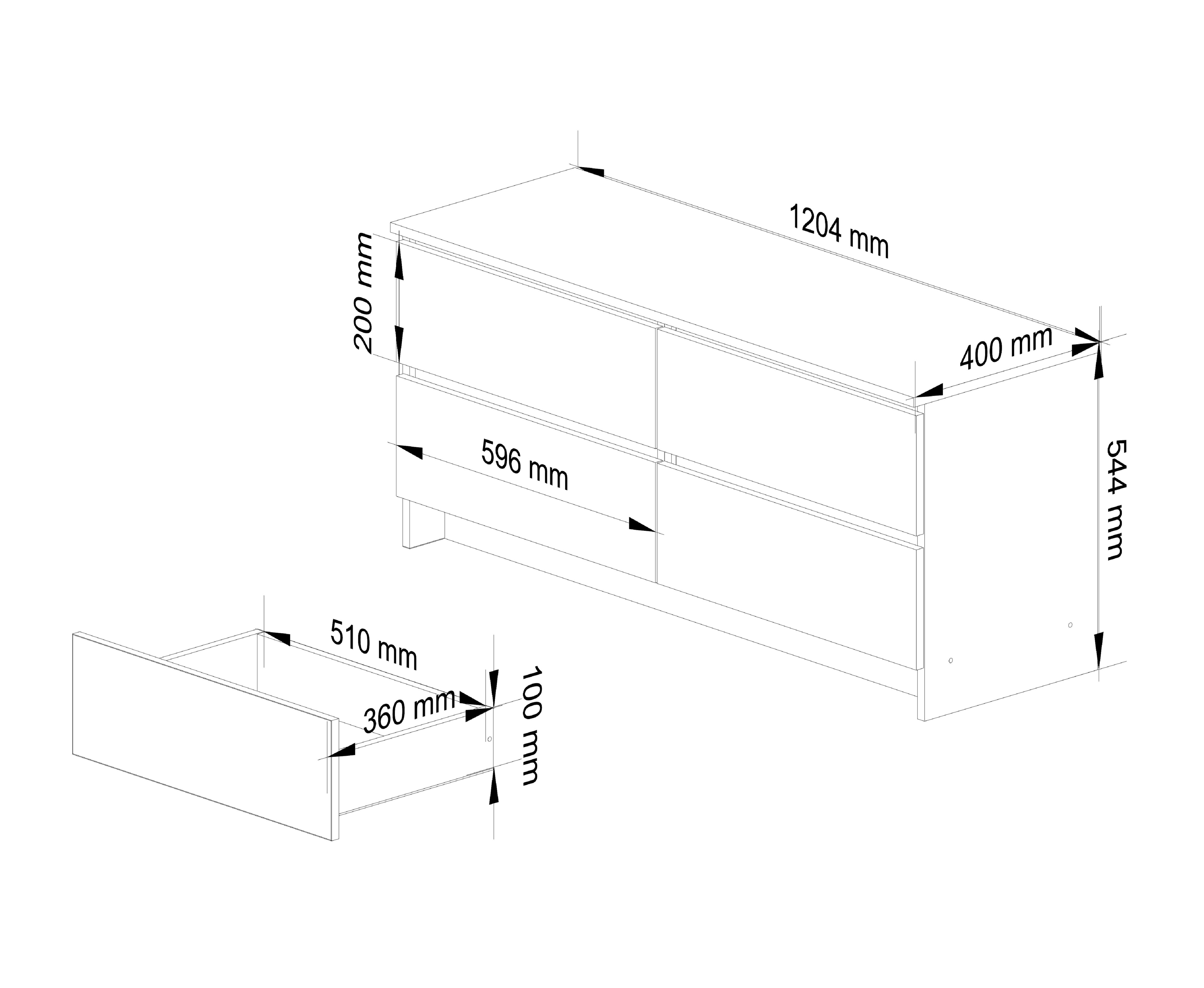 | Libellé | Commode AKORD K120 Blanche 120 cm 4 tiroirs façade Gris Graphite 120x40x55 cm |