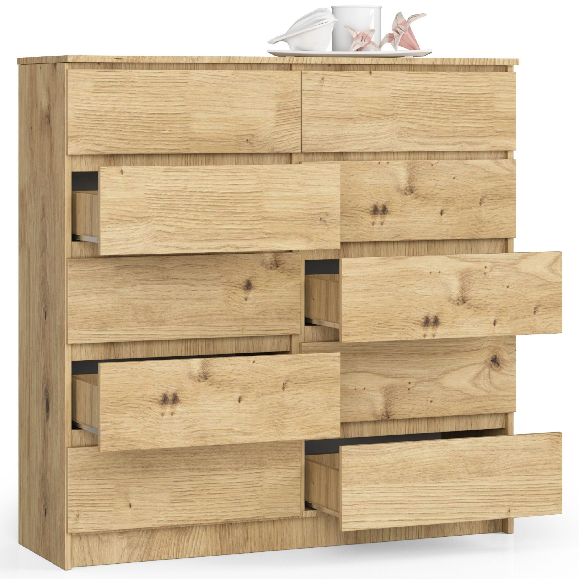 Commode AKORD K120 Chêne Artisan 120 cm 10 tiroirs façade Chêne Artisan 120x40x121 cm