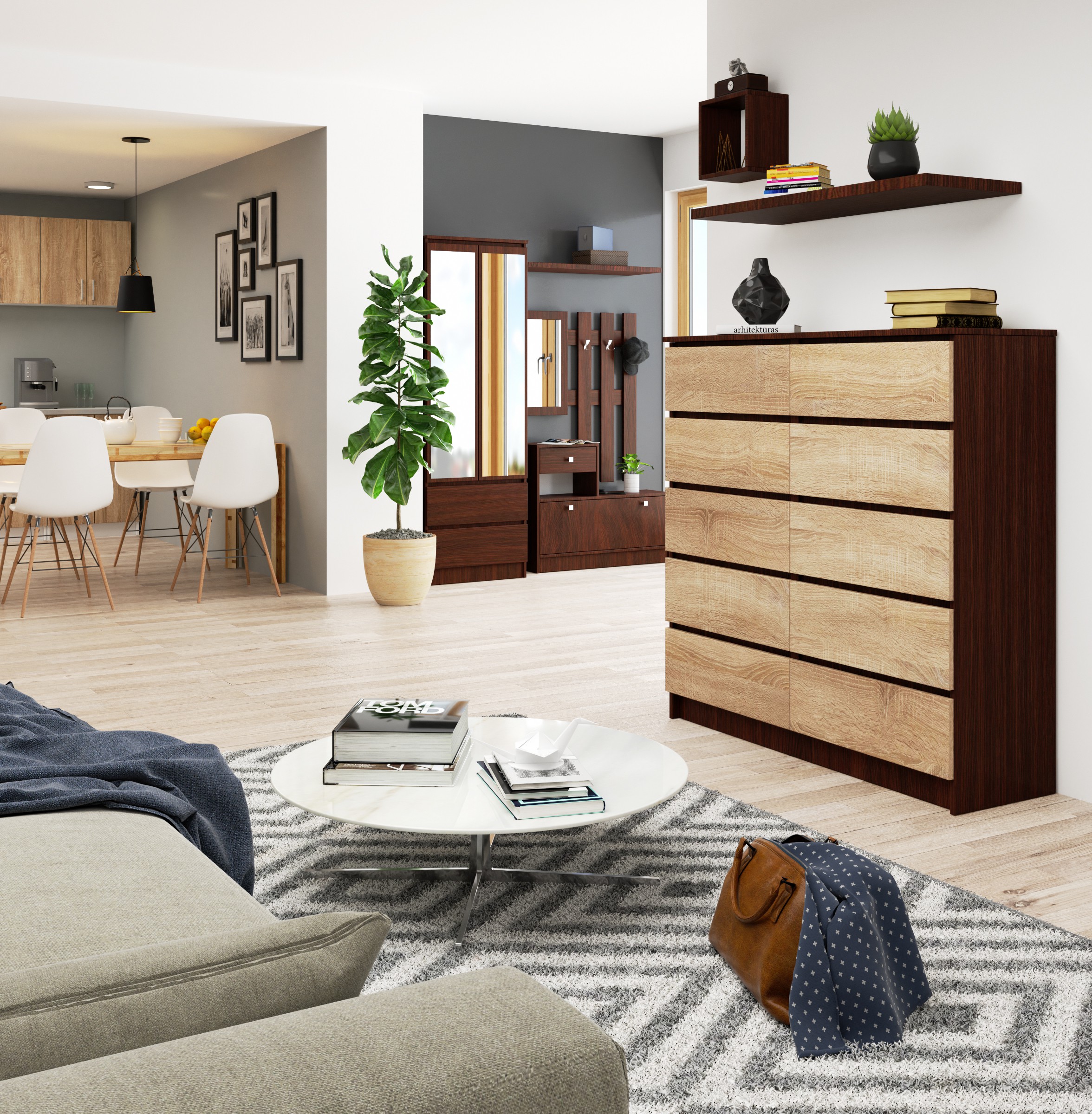 Commode AKORD K120 Wengé 120 cm 10 tiroirs façade Chêne Sonoma 120x40x121 cm