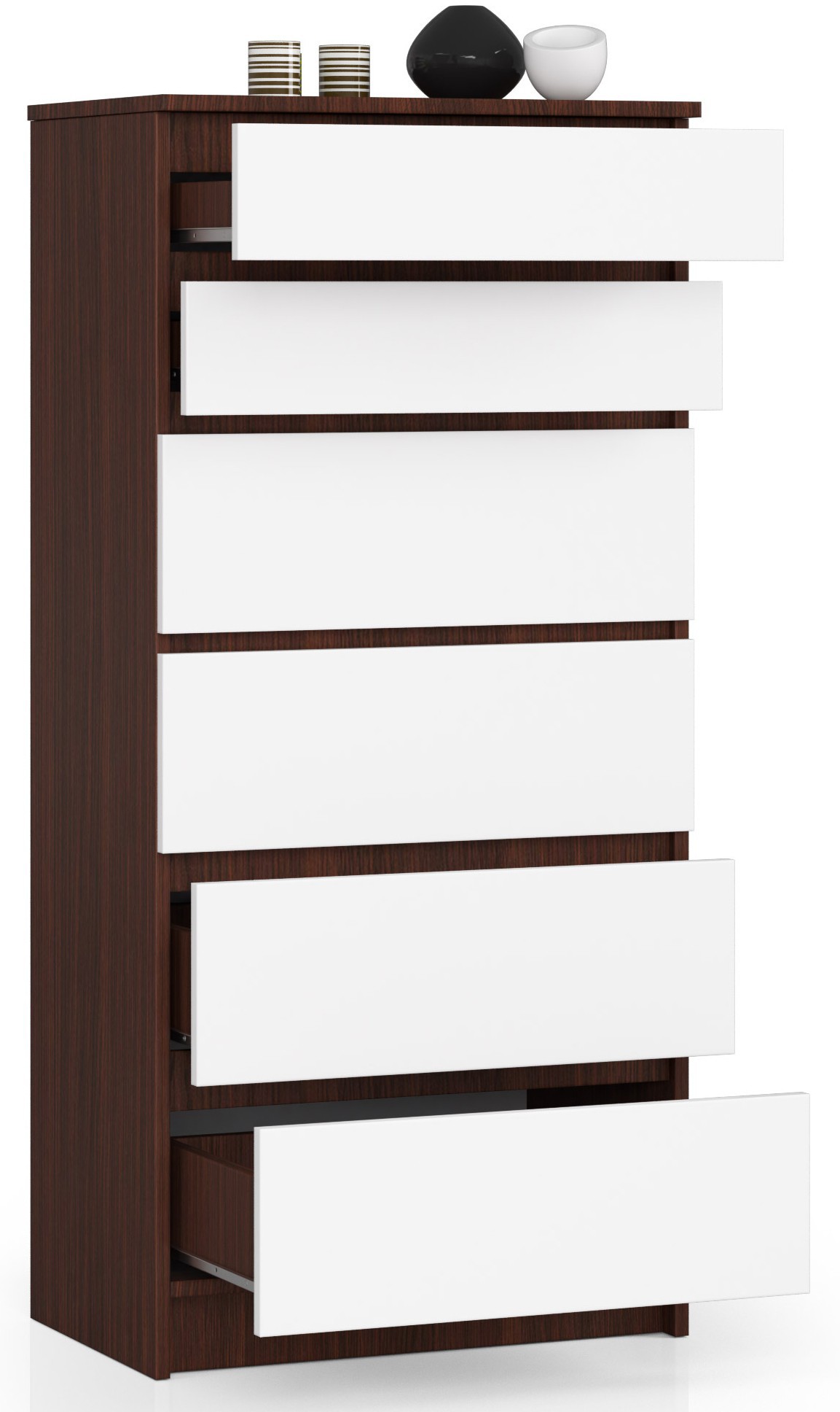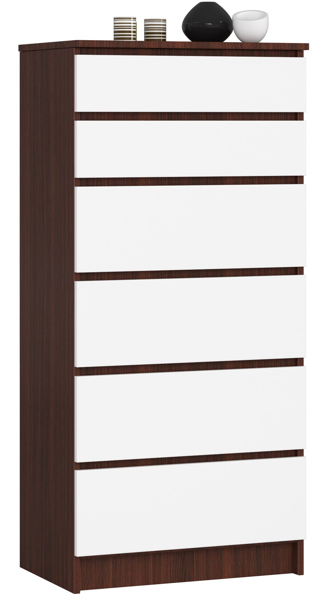 Commode AKORD K60 Wengé 60 cm 6 tiroirs façade Blanche 60x40x130 cm