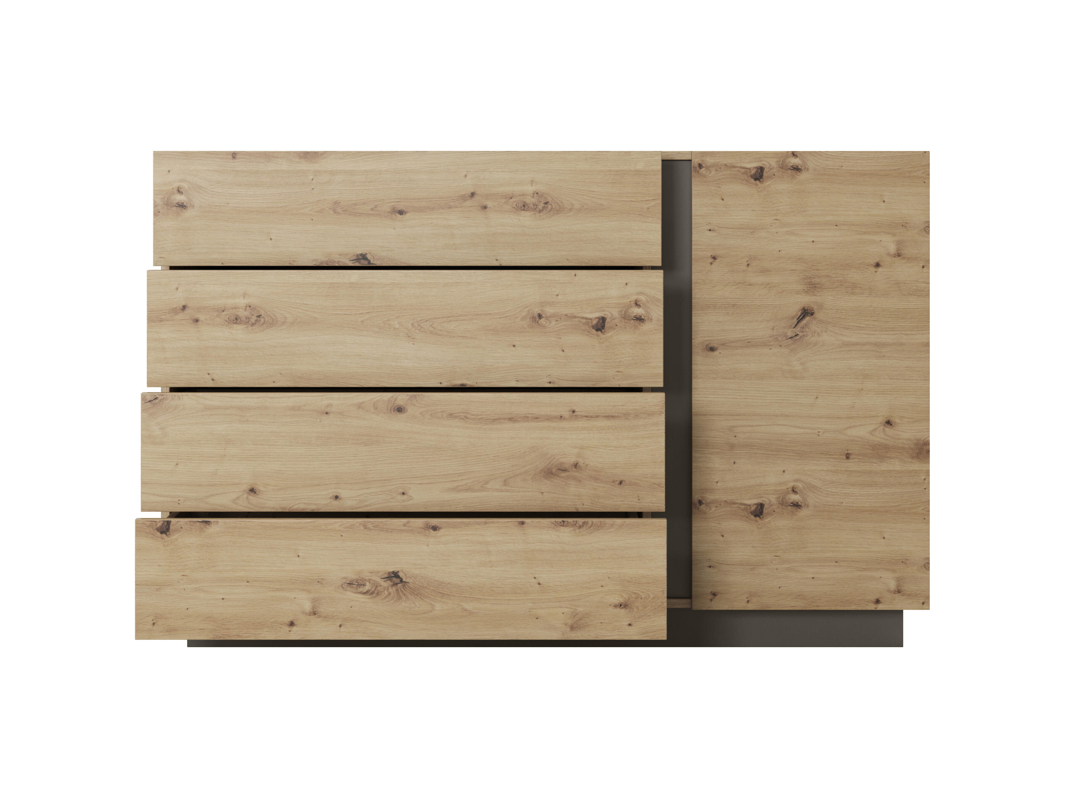 Ajoutez une touche de modernité à votre espace avec la commode ARCO en graphite. Ce meuble élégant, d'une hauteur de 91 cm et d'une largeur de 139 cm, présente une finition graphite sombre et séduisante, avec quatre tiroirs, deux étagères et une porte, offrant des options de rangement polyvalentes. Idéale pour ceux qui préfèrent un look contemporain avec une fonctionnalité pratique, cette commode est parfaite pour organiser les éléments essentiels avec style.
