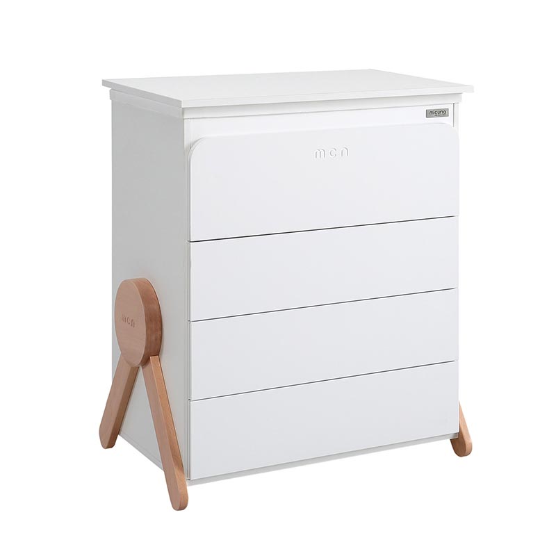 La commode baignoire plan à langer 4 tiroirs Swing Blanc de la marque Micuna est un meuble de rangement et de toilette à la fois compact et design. Polyvalent, ce meuble aux lignes sobres et au design scandinave comporte un espace de rangement avec ses 4 tiroirs, une bassine pour laver bébé, un porte-savon et un plan à langer. Ultra pratique, la bassine et le plan à langer sont amovibles pour profiter durablement de votre commode. Elle est livrée avec un revêtement en plastique à pois beiges. Fabriquée artisanalement en Espagne, cette commode est conçue à partir de bois de hêtre provenant de forêts gérées durablement, de peintures à l'eau et de vernis non toxiques selon les principes de l'écoconception. Elle mesure H100,9 x L76,3 x P49 cm, et est également disponible dans le coloris Gris Nuit. Quelles sont les caractéristiques de la commode baignoire plan à langer 4 tiroirs Swing Blanc de Micuna ? La commode est caractérisée par un design minimaliste et un piétement original et robuste. Elle comprend une bassine, un plan à langer, un porte-savon, un trou d'évacuation et un revêtement en plastique à pois beiges. Le plan à langer et la bassine se retirent facilement pour transformer le meuble en commode classique pour une utilisation durable. La commode est fabriquée en bois de hêtre et peintures à l'eau selon les principes de l'écoconception. Quelles sont les caractéristiques techniques de la commode baignoire plan à langer 4 tiroirs Swing Blanc de Micuna ? Matériaux : Hêtre - MDF laqué - plateau en mélamine Entretien : essuyer la commode avec un chiffon sec pour enlever la poussière ou un chiffon légèrement humidifié avec de l'eau (l'utilisation de produits abrasifs est déconseillée). Dimensions : H100,9 x L76,3 x P49 cm Conforme à la norme UNE-EN 12221-1/2:2009