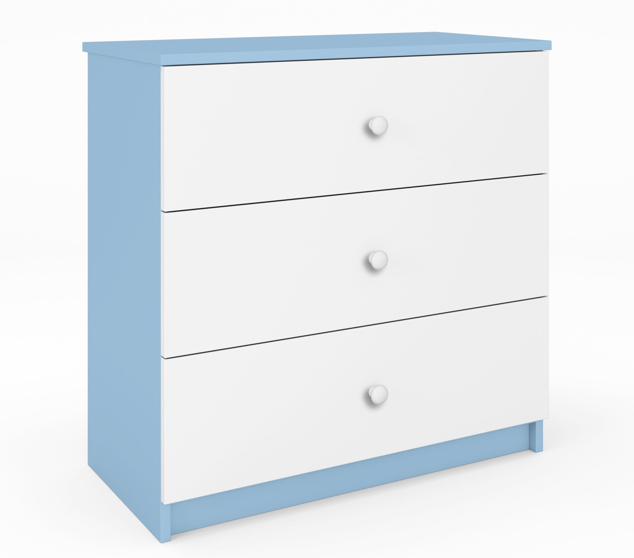 La commode pour enfant blanche et bleue est fabriquée en panneau de meuble stratifié de haute qualité de 18 mm d'épaisseur. La commode dispose de 3 tiroirs spacieux de 34 cm de profondeur. Ils sont montés sur des guides à rouleaux qui permettent une utilisation facile. Dans la même collection, nous vous proposons des lits et des armoires. Coloris : blanc alpin et bleu Dimensions et poids : L 80 x H 80 x P 41 cm - 38 kg Matériaux : Bois Européen Certifié FSC Le bois utilisé est issu de forets gérées de façon durable et responsable ! Panneaux de stratifiés 18 mm d’épaisseur Fabriqué en Europe - Garantie 2 ans Conforme aux Normes de Sécurité Européennes