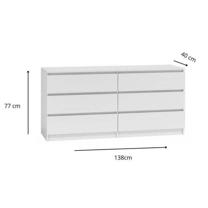 | Libellé | Commode moderne avec 6 tiroirs 140 cm Malwa M6 - Blanc |